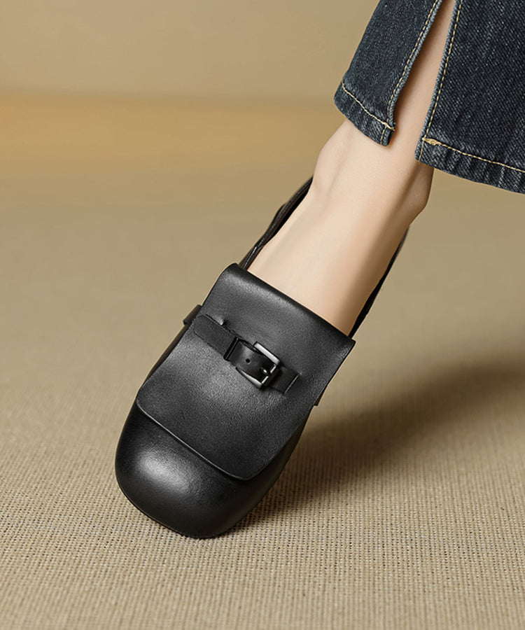Beige Cowhide Leather Splicing Loafers For Women
