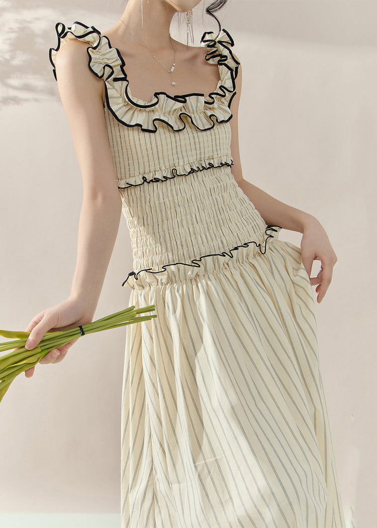 Bohemian Apricot Ruffled Patchwork Slim Long Dress Sleeveless