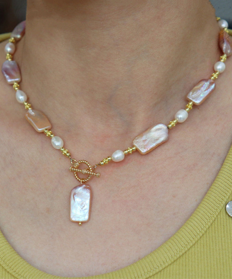 Boho Gold Sterling Silver Alloy Pearl Pendant Necklace