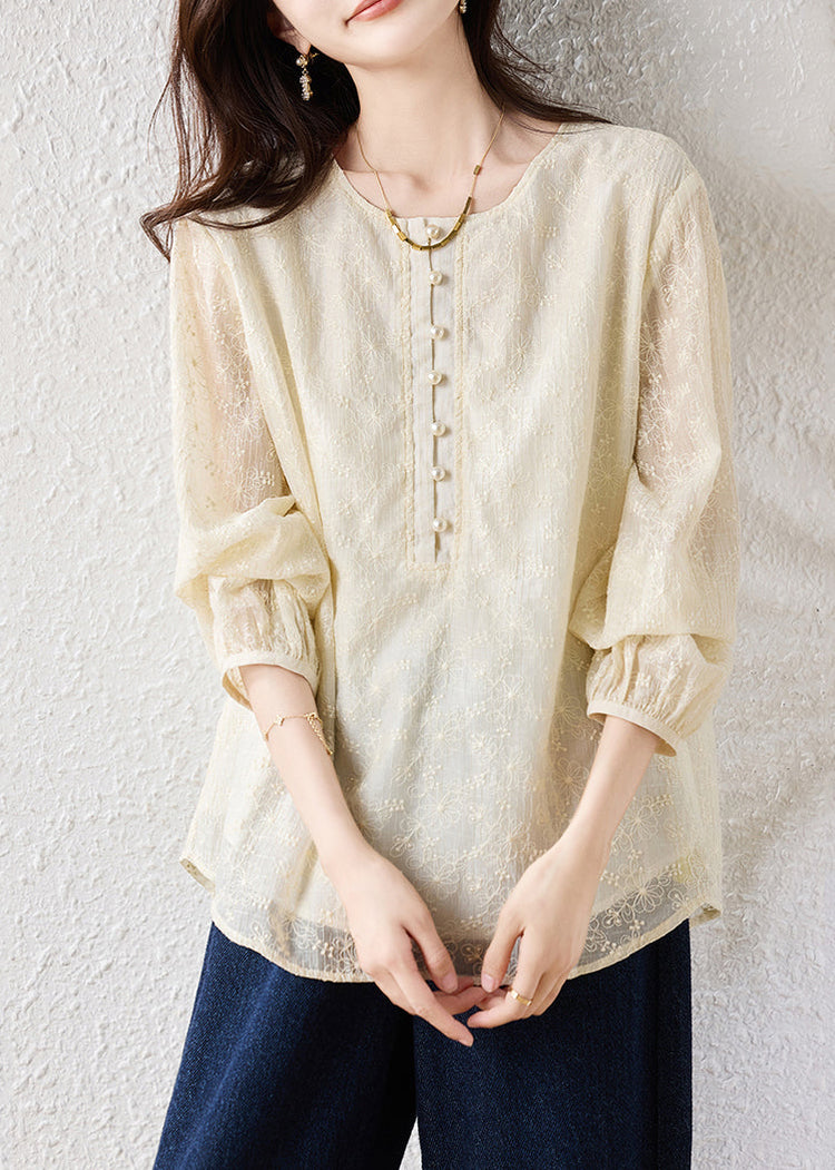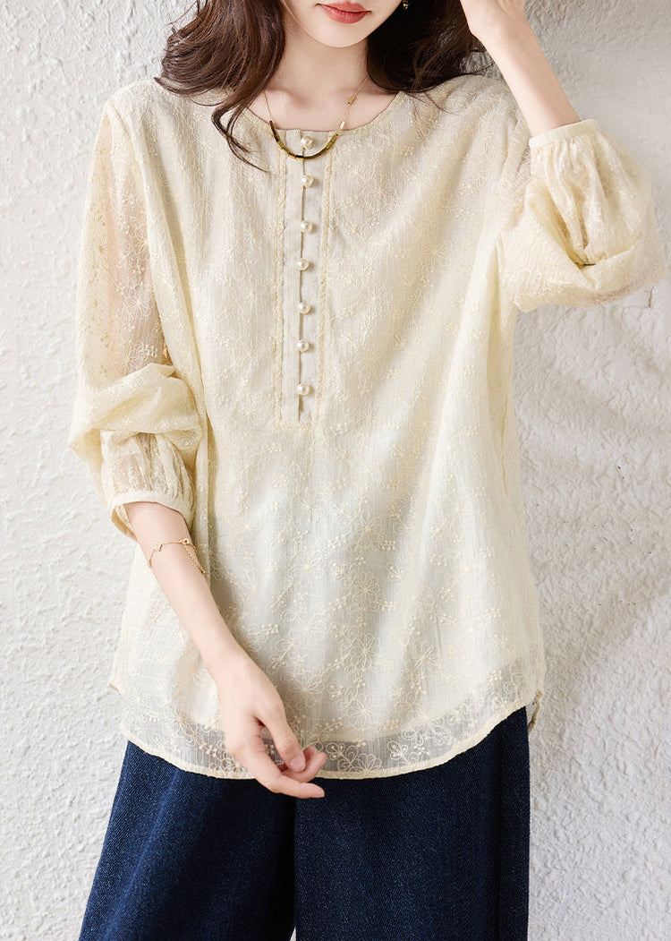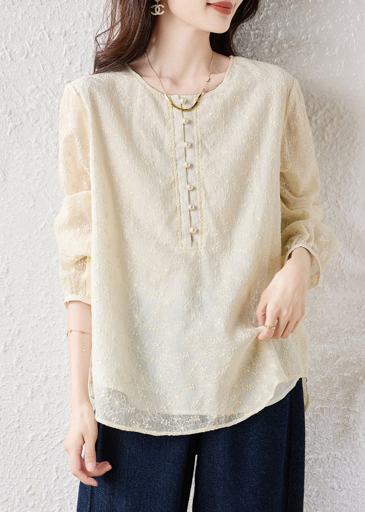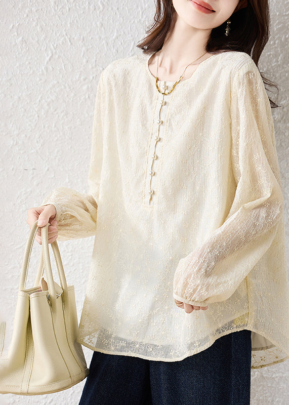 Boutique Beige Oversized Jacquard Cotton Blouse Tops Fall