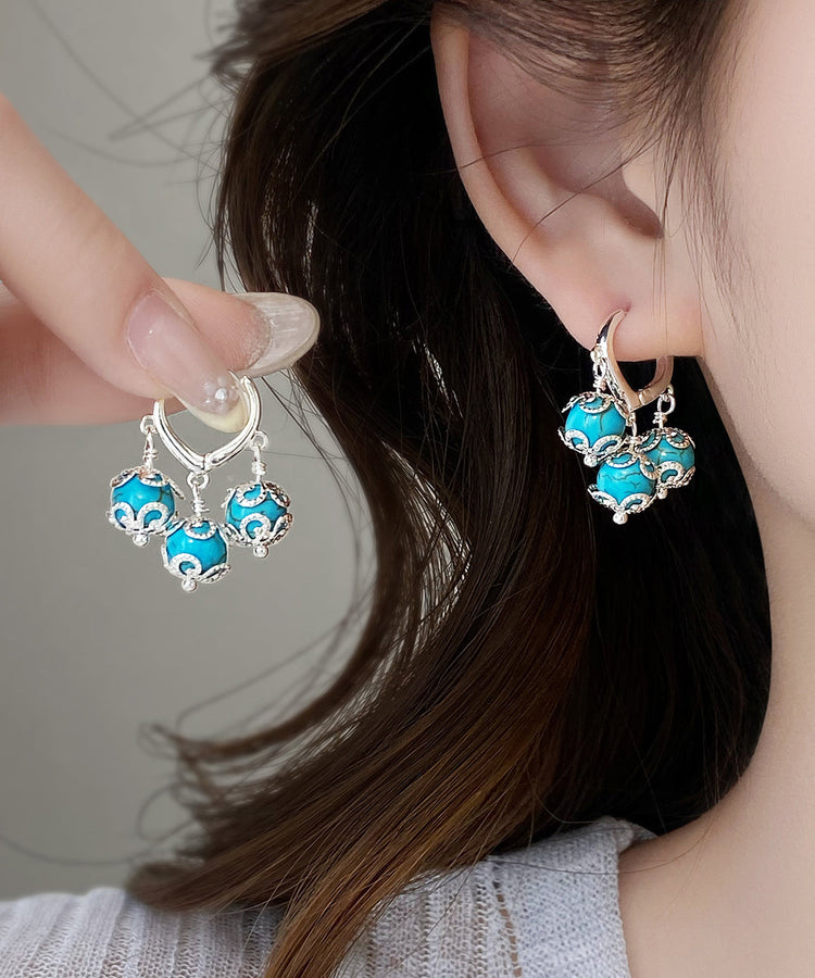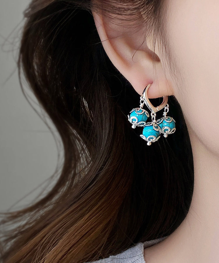 Boutique Blue Copper Overgild Turquoise Tassel Drop Earrings