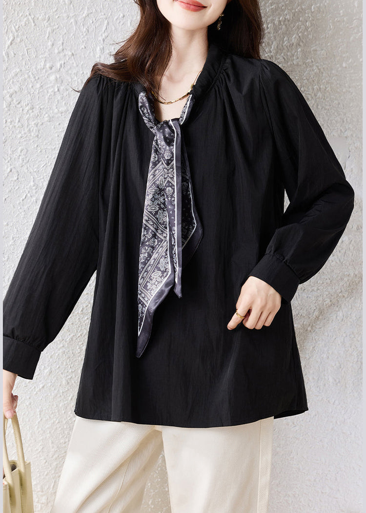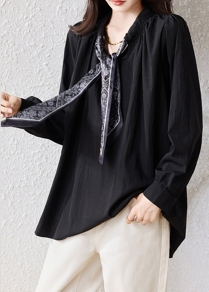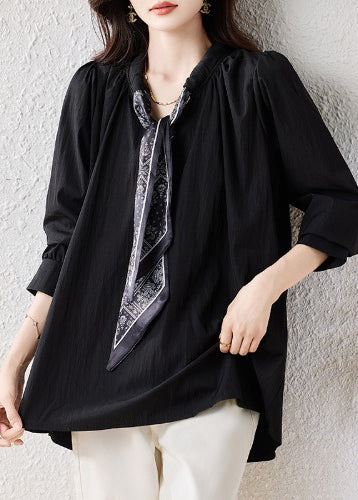 Casual Black Oversized Scarf Cotton Blouse Top Fall