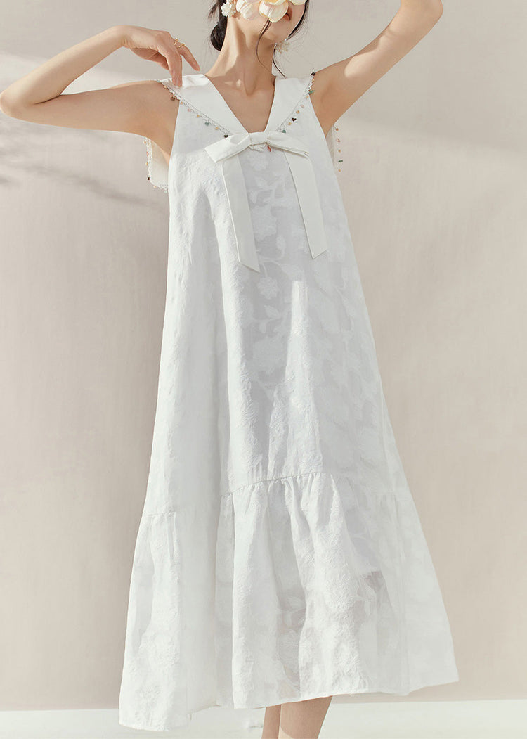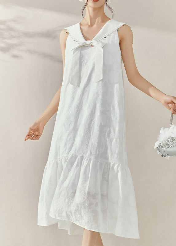 Cute White Sailor Collar Patchwork Party Long Dress Sleeveless