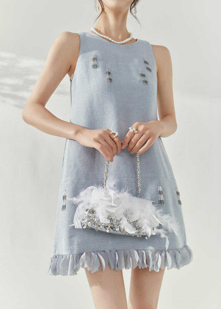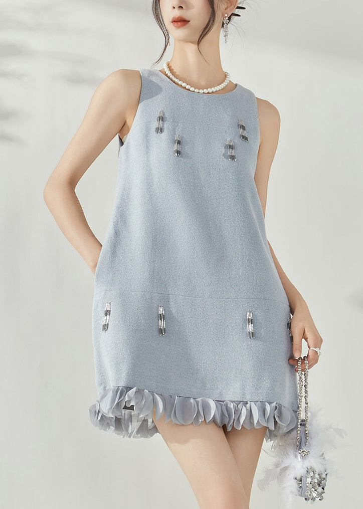 Elegant Blue O-Neck Patchwork Nail Bead Mid Dresses Sleeveless