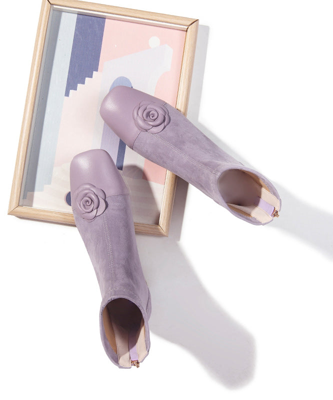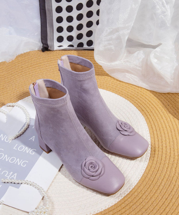 Elegant Purple Suede Floral Splicing Chunky Boots