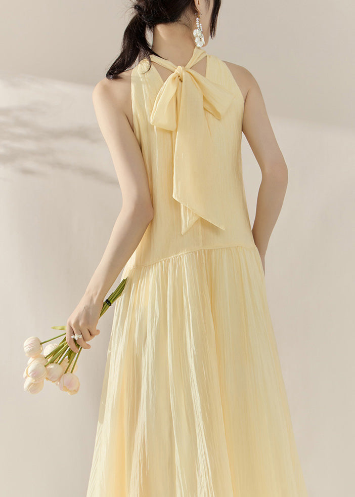 Elegant Yellow Halter Cold Shoulder Patchwork Holiday Maxi Dresses Summer