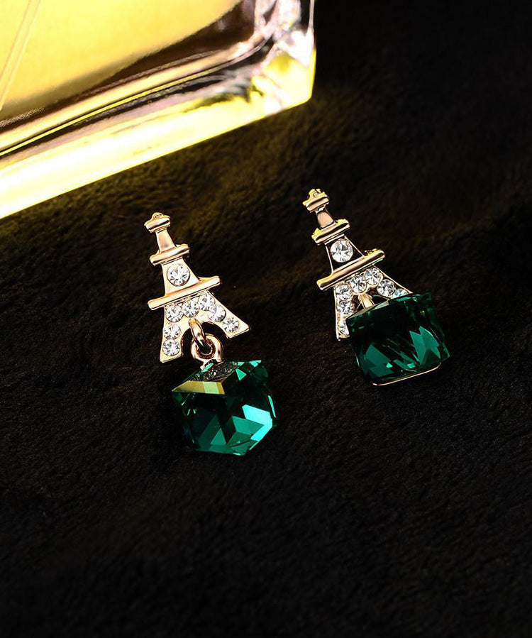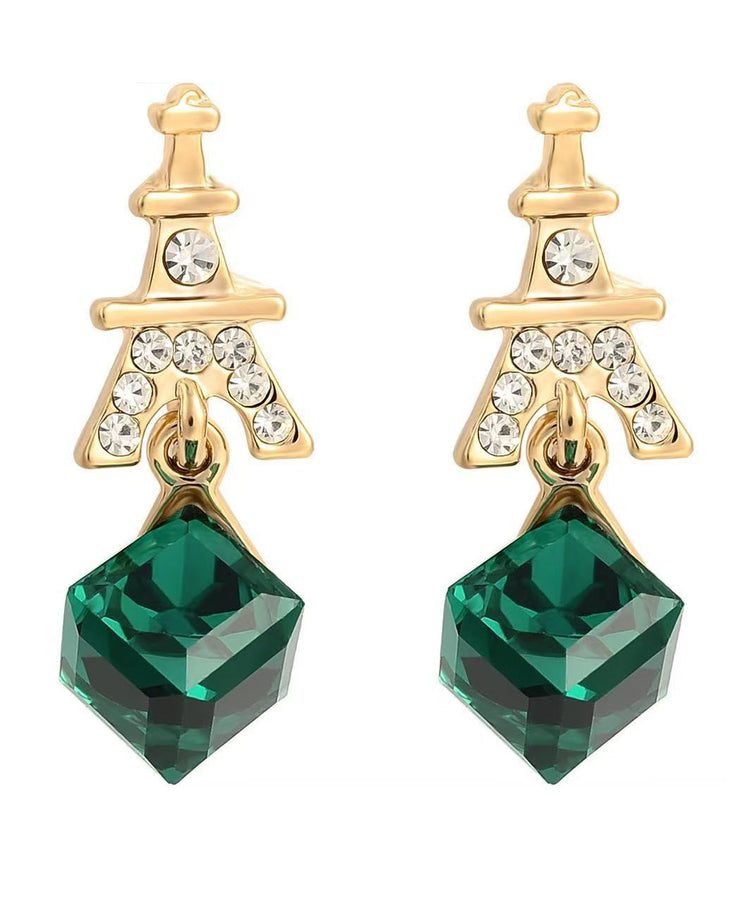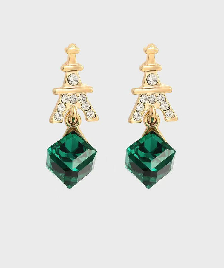 Fashion Green Sterling Silver Overgild Zircon Crystal Drop Earrings