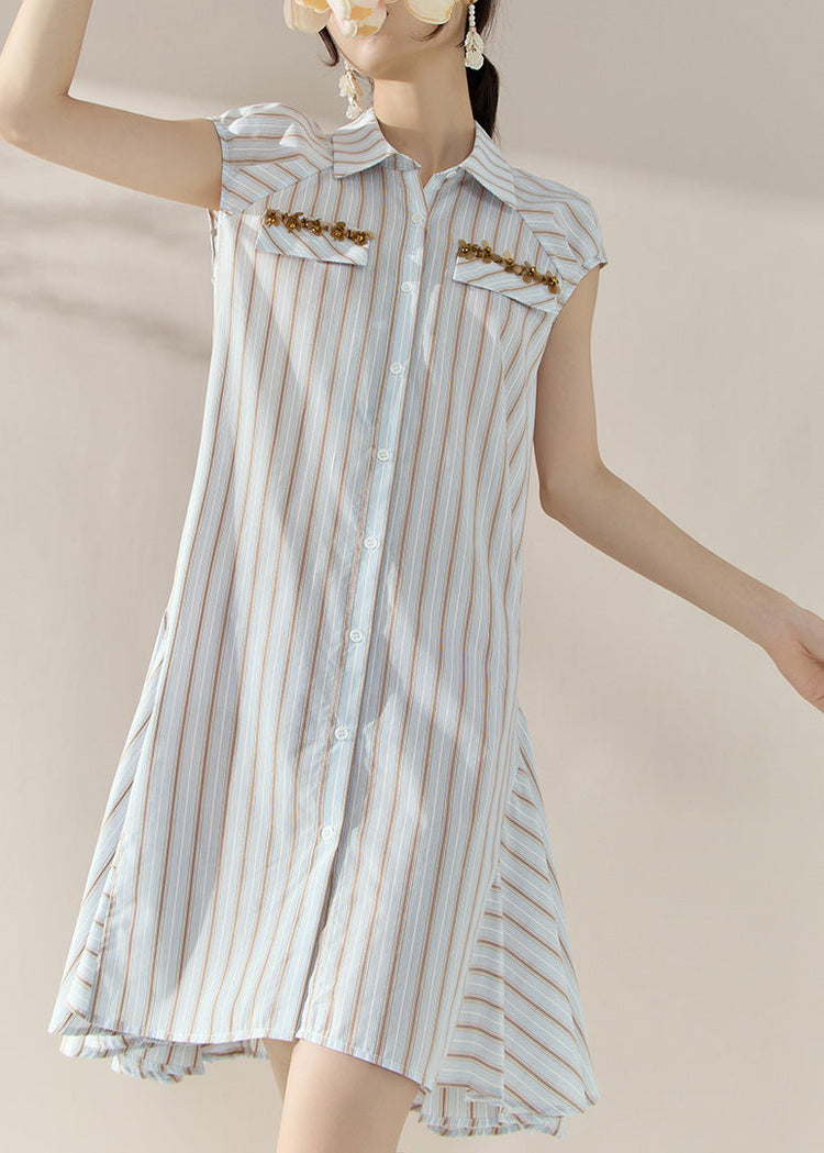 Fashion Striped Peter Pan Collar Button Holiday Mid Dress Short Sleeve