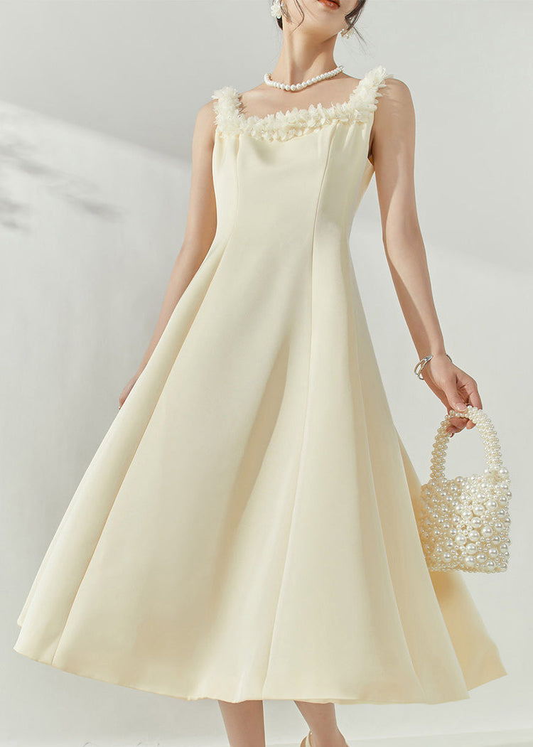 French Beige Square Collar Floral Maxi Dresses Sleeveless