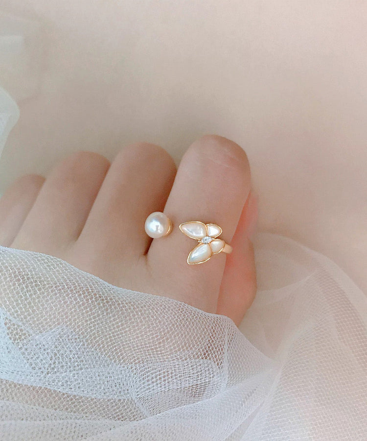French Gold Copper Overgild Pearl Butterfly Open Rings