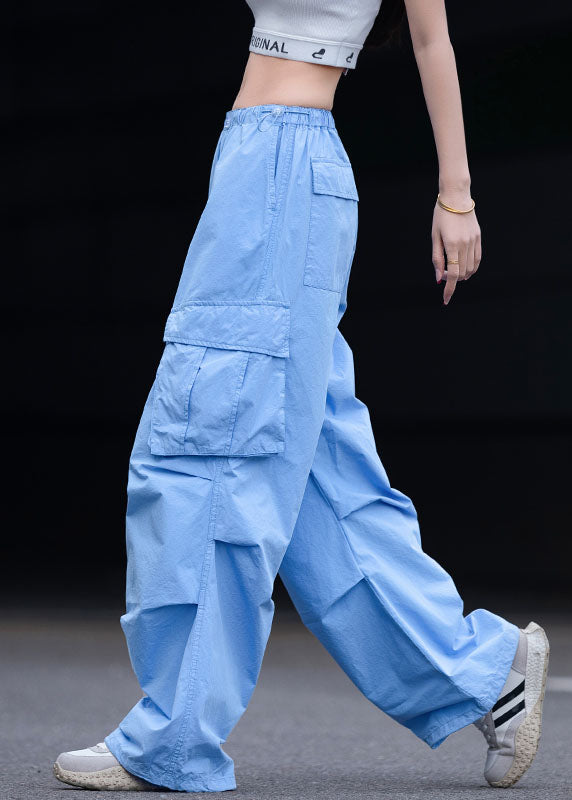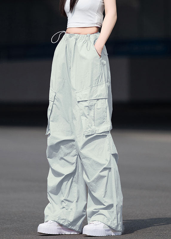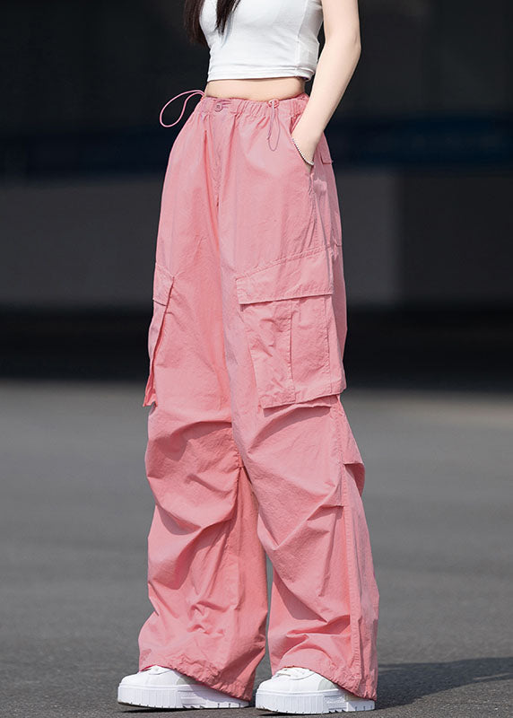 French Rose Pockets Patchwork Drawstring Cotton Pants Fall