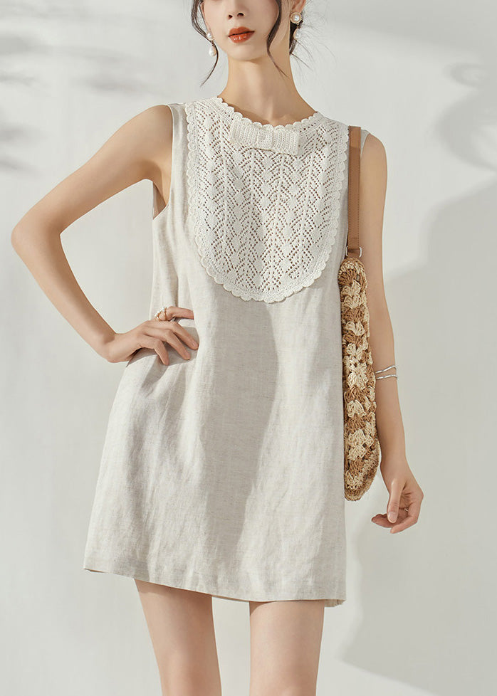 French White O-Neck Hollow Out Party Mid Dress Summer