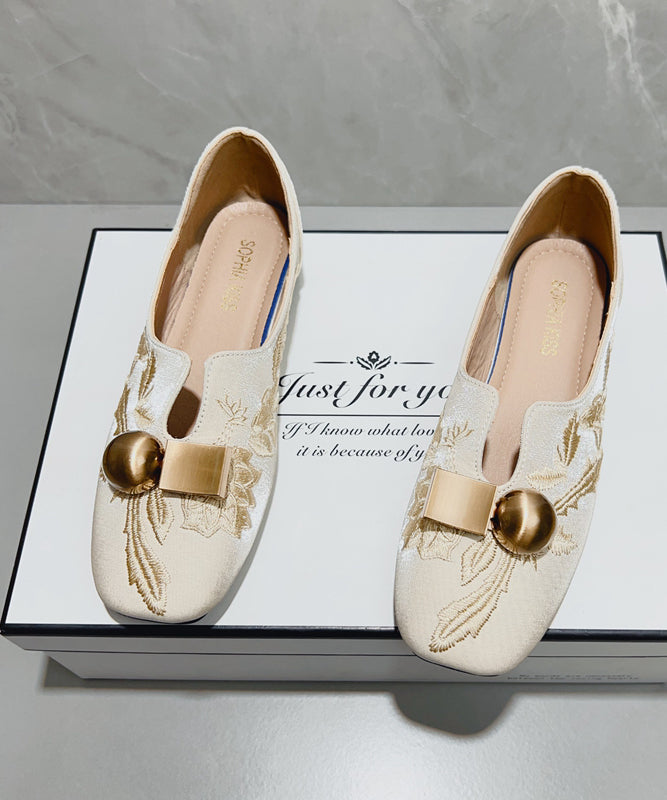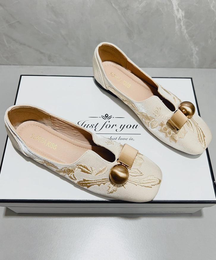 Handmade Splicing Penny Loafers Light Green Satin Embroidered