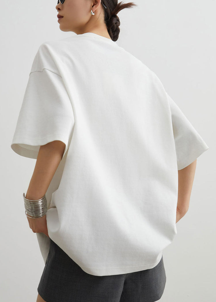 Handmade White Rose Nail Bead Cotton T Shirts Half Sleeve