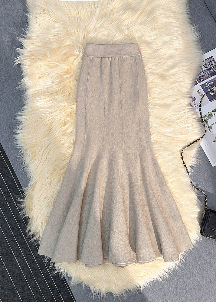 Italian Khaki Silm Fit Warm Knit Wraped Skirts Fall
