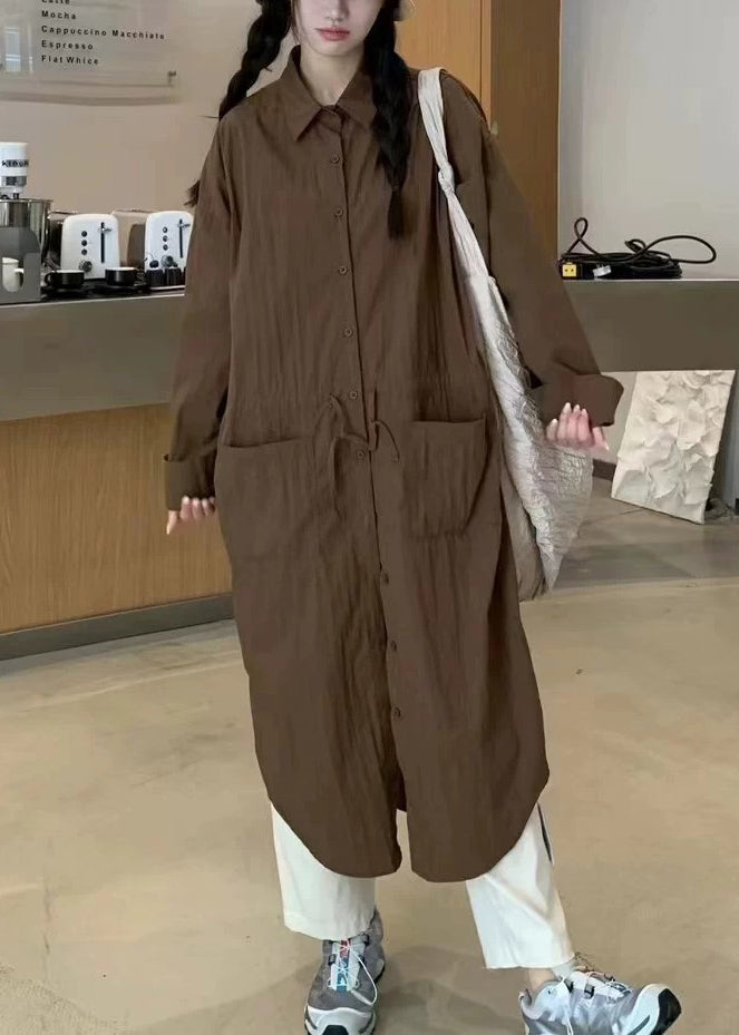 Loose White Pockets Cinched Cotton Shirts Dresses Fall