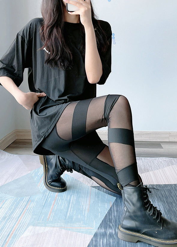 Modern Black Patchwork Tulle Flatering Pants Fall