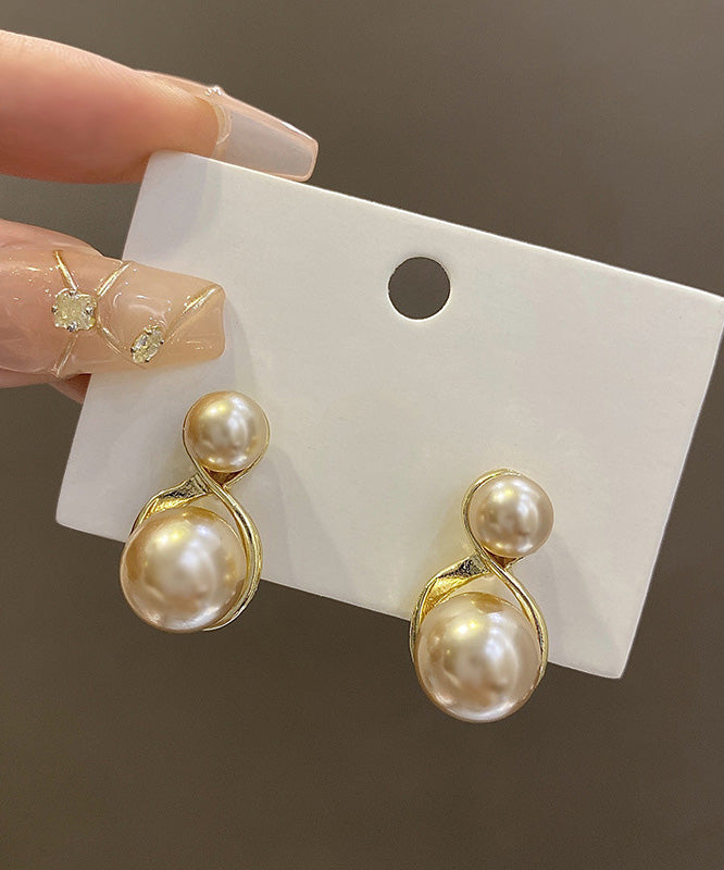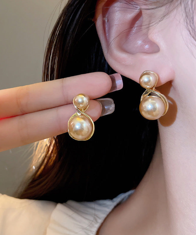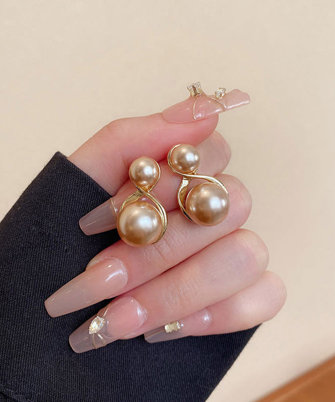 Modern Champagne Copper Overgild Pearl Stud Earrings