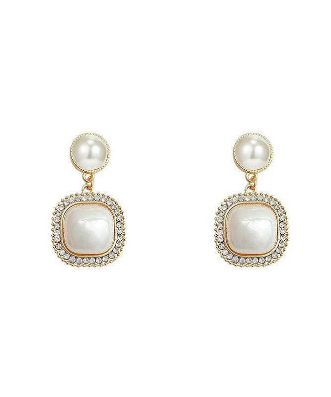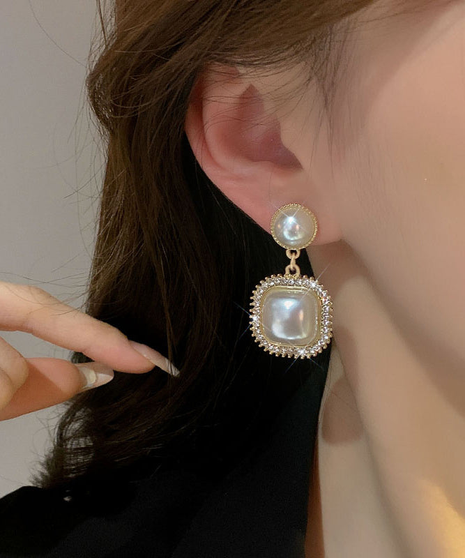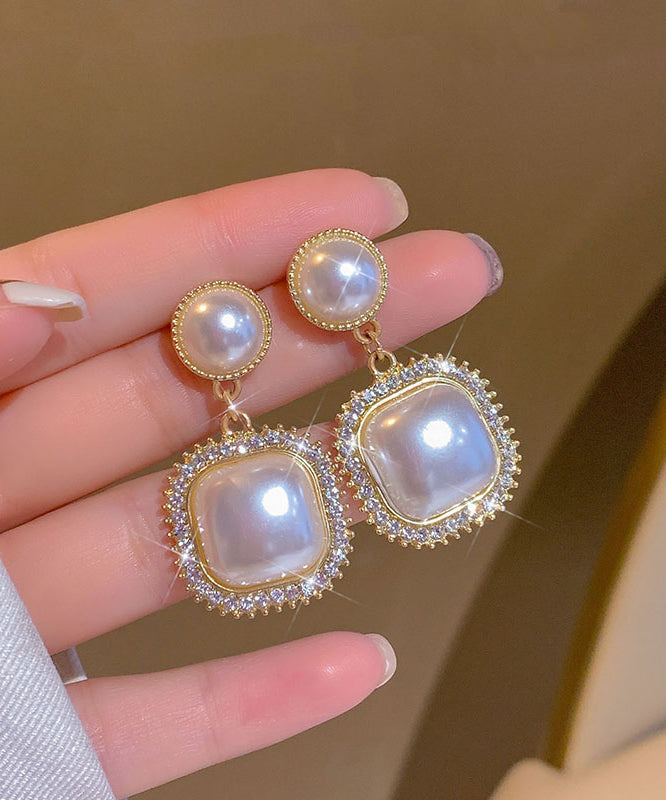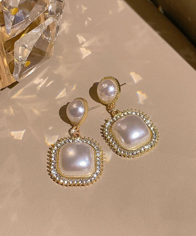 Modern Gold Copper Alloy Zircon Pearl Drop Earrings