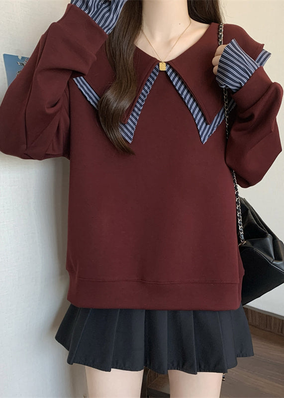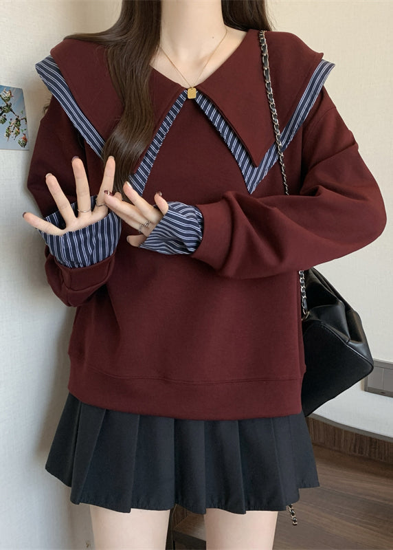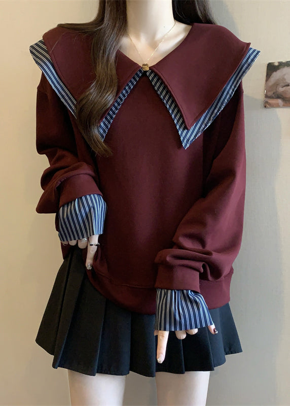Mulberry Patchwork Cotton Fake Two Piece Sweatshirts Oversized Fall