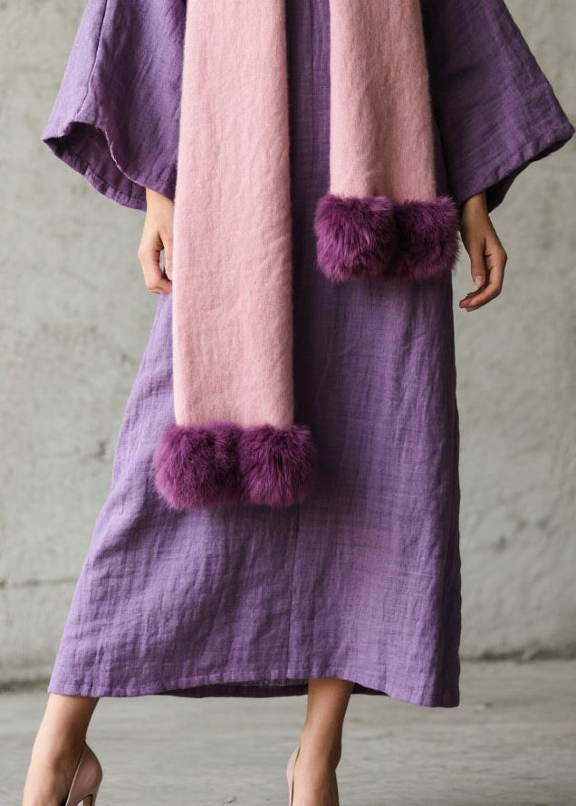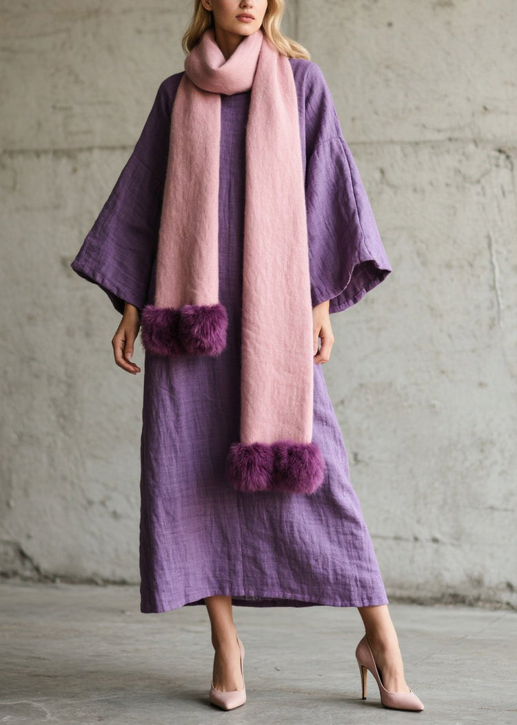 Natural Lavender Oversized Cotton Straight Dresses Fall