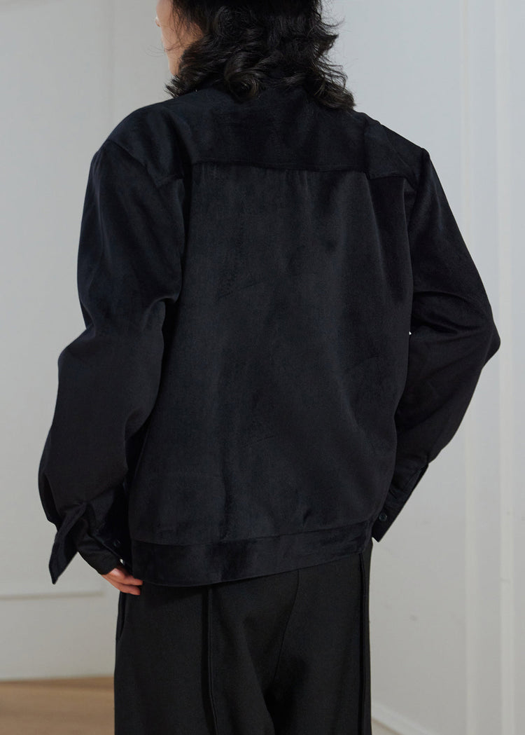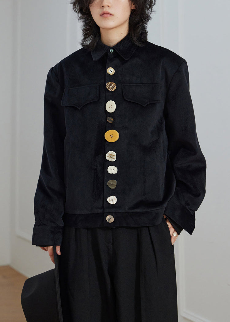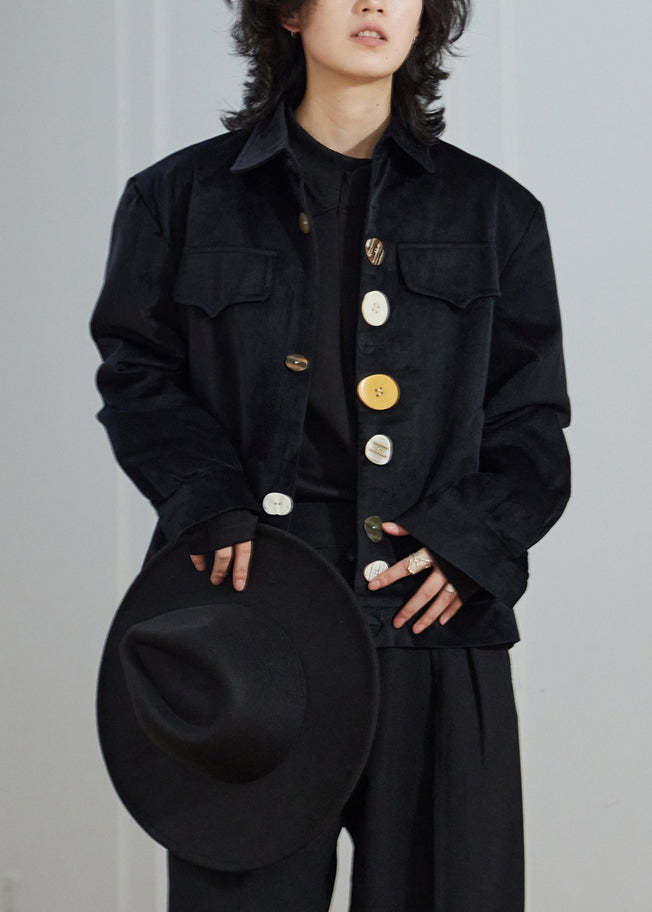 New Black Peter Pan Collar Button Pockets Corduroy Jackets Fall