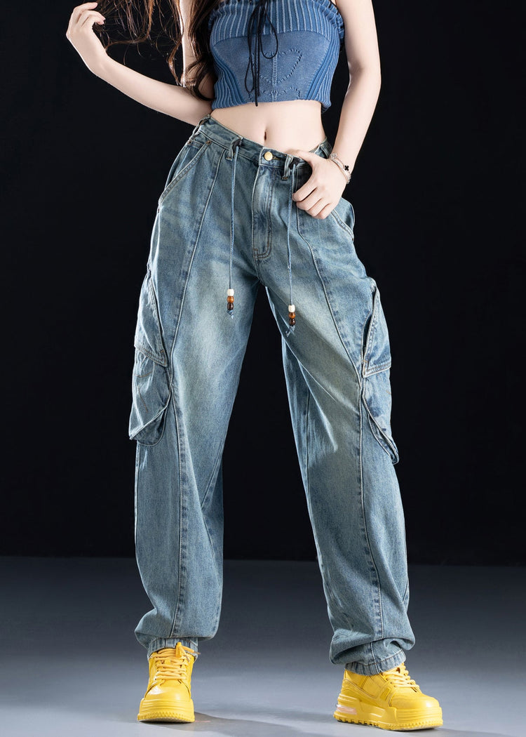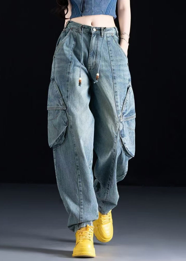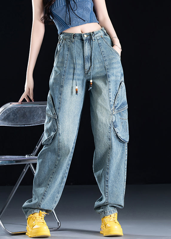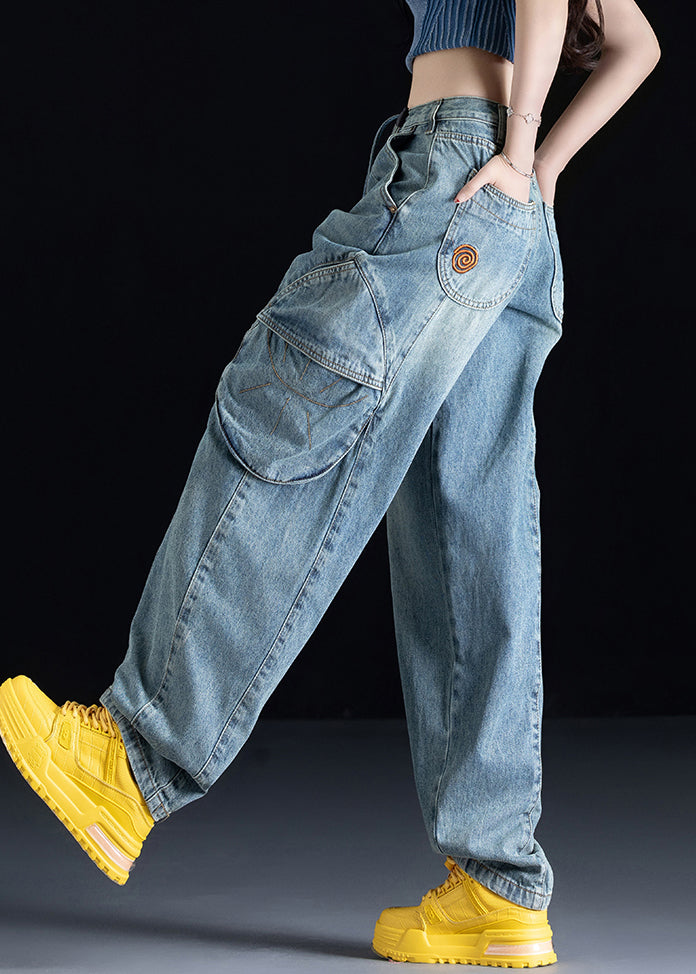 Organic Blue Pockets Patchwork Denim Pants Fall
