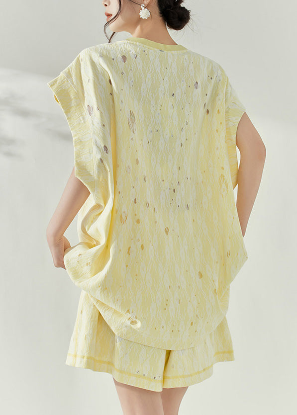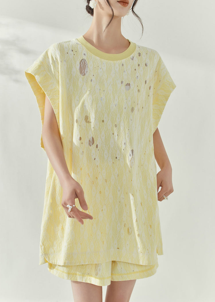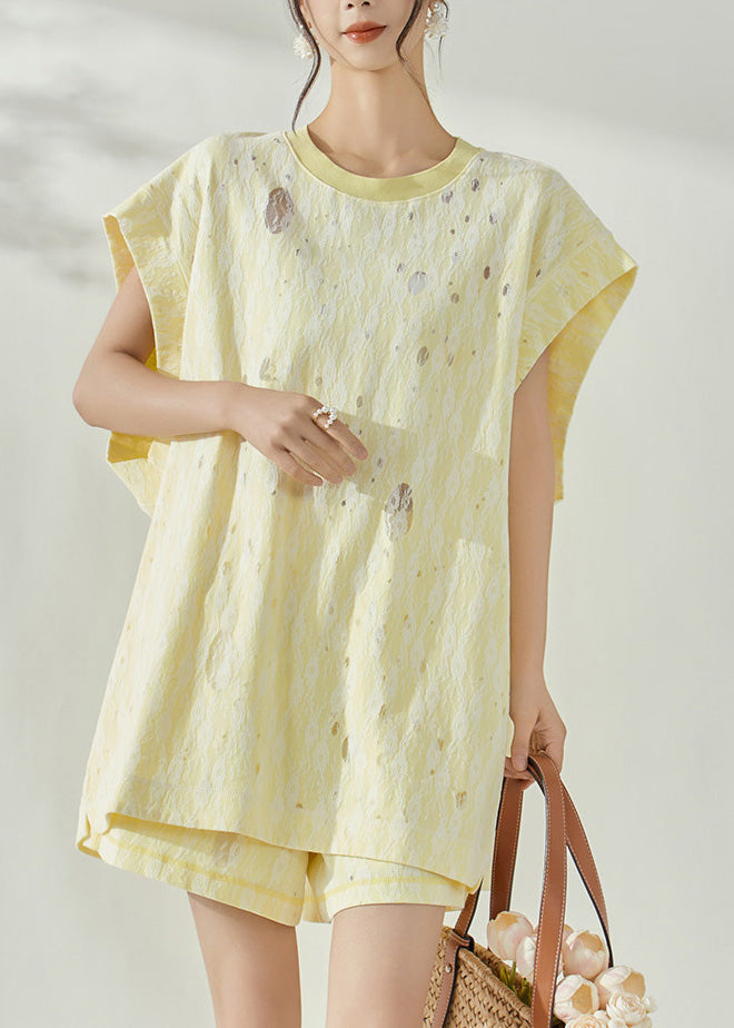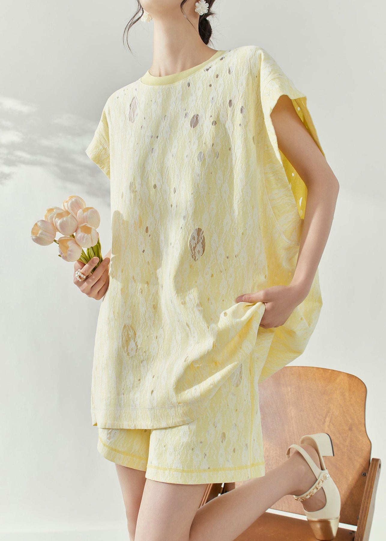 Organic Yellow Print Cotton Top And Shorts Two-Piece Set Short Sleeve