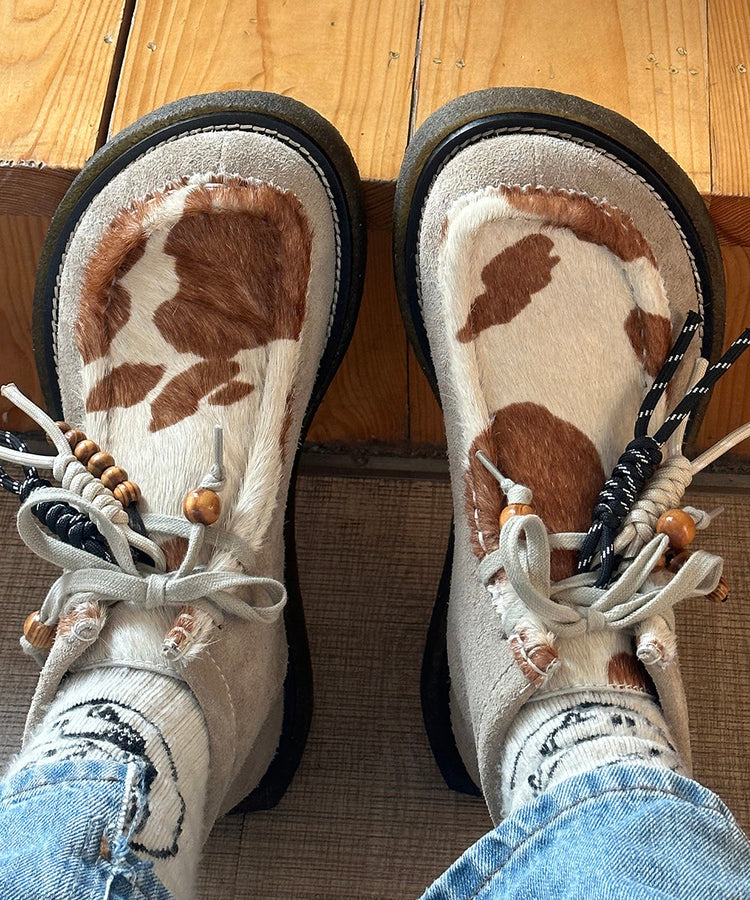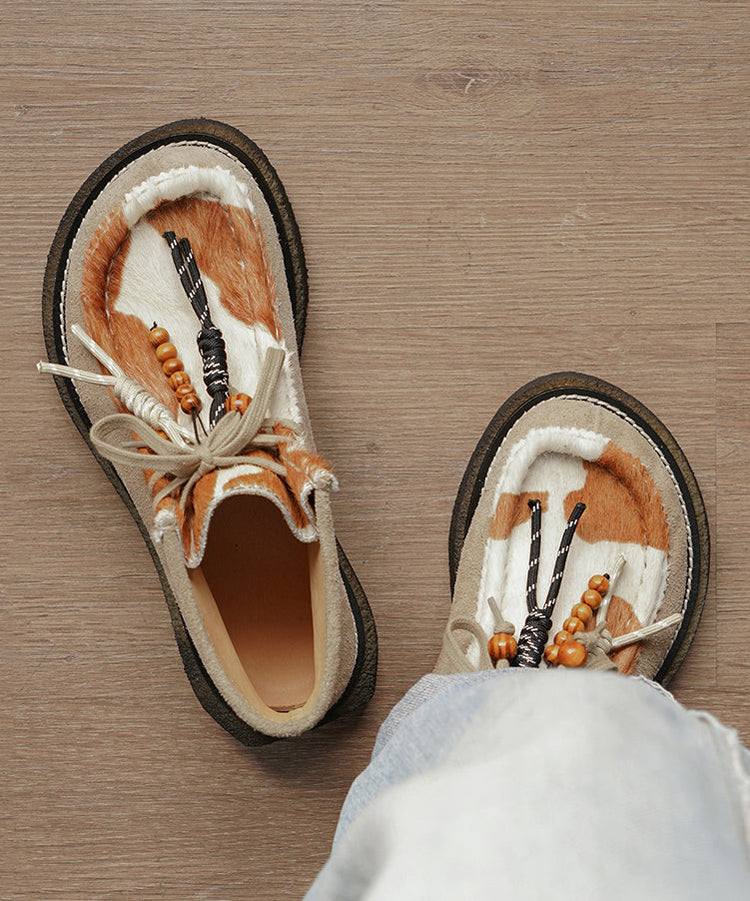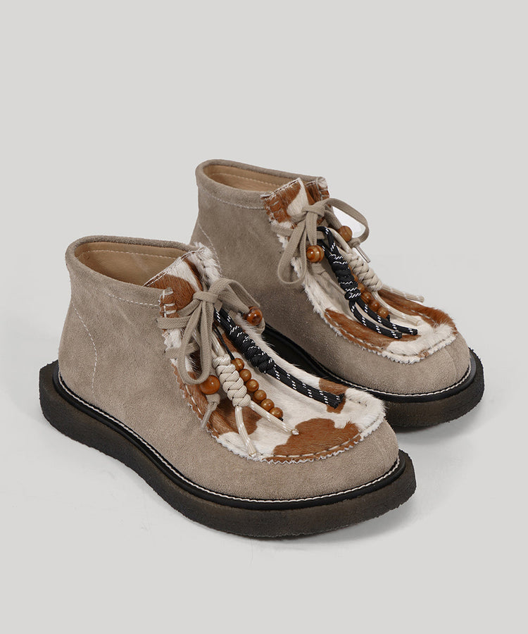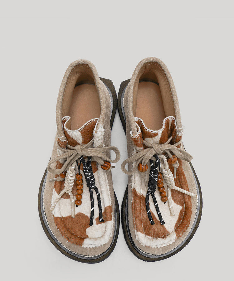 Original Design Suede Flat Shoes Splicing Horsehair Lace Up