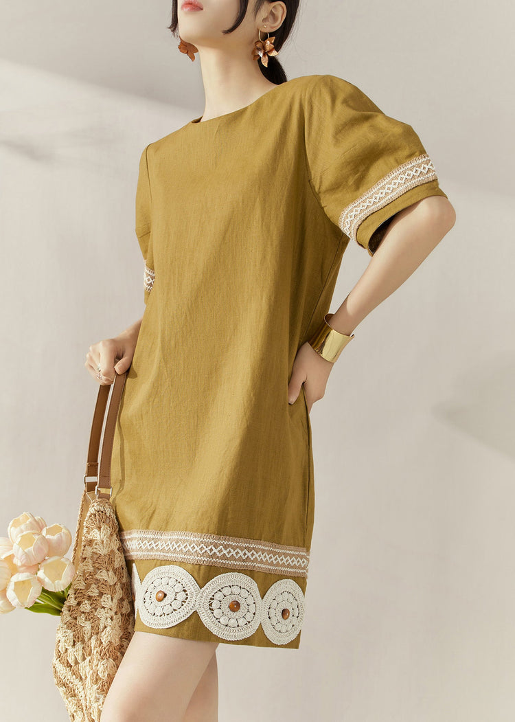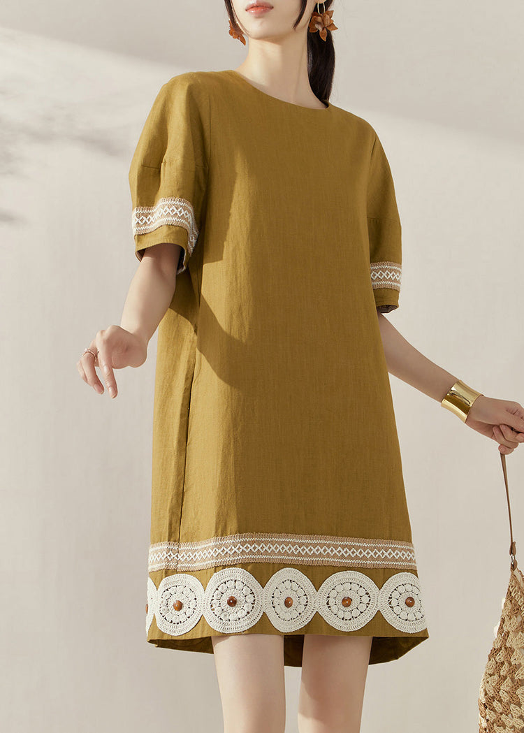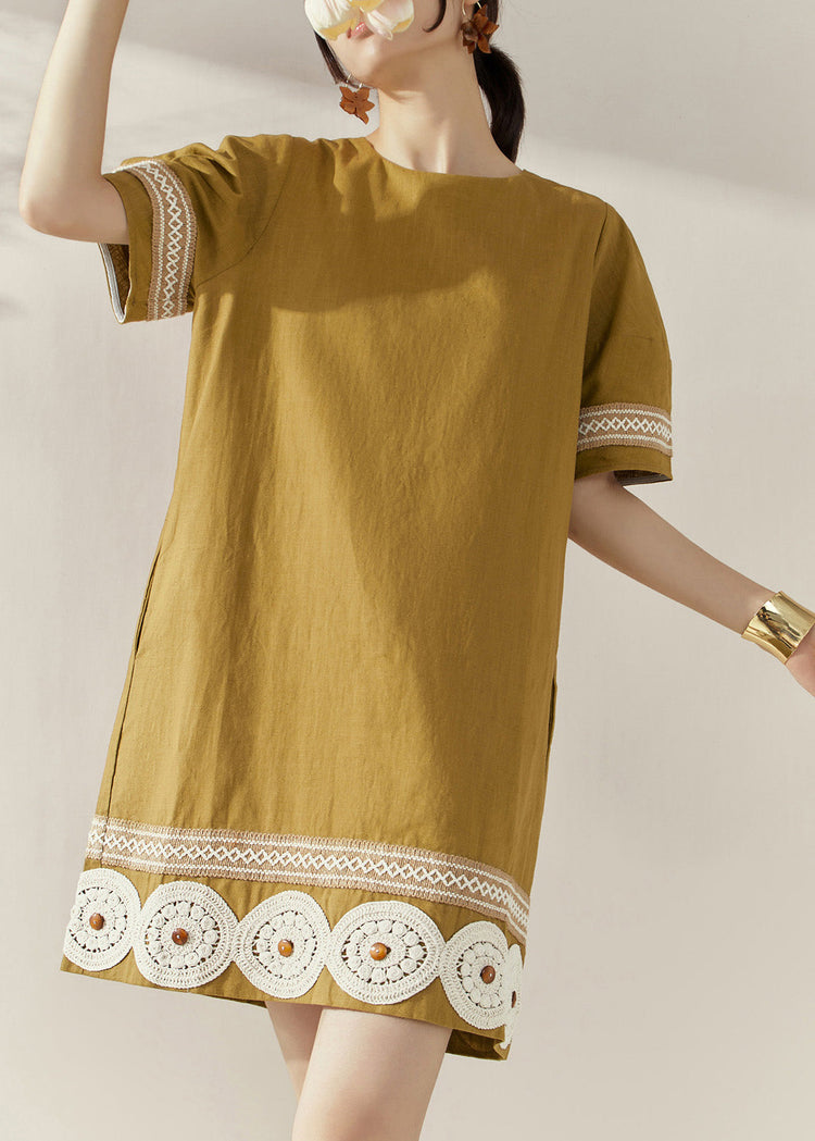 Original Design Yellow Print Patchwork Mid Dresses Summer