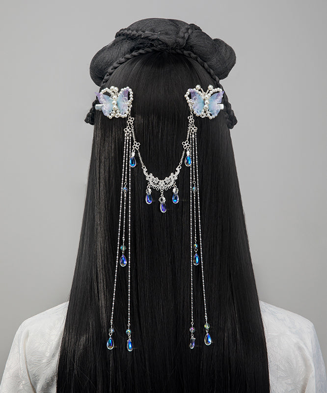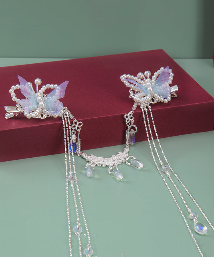Retro Light Purple Alloy Tulle Butterfly Beading Tassel Hairpin