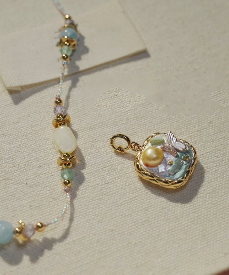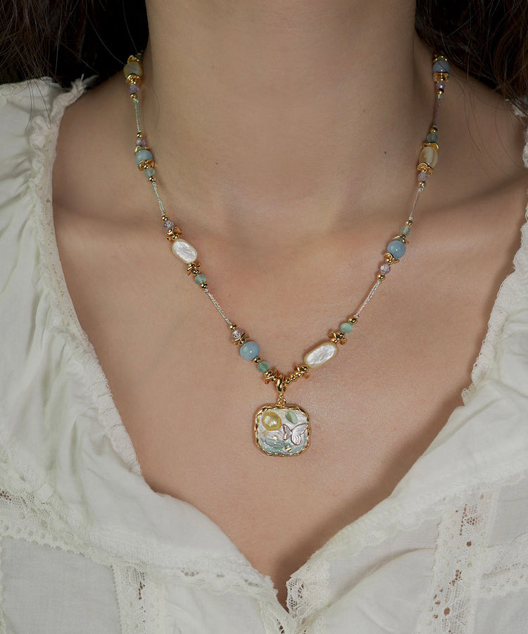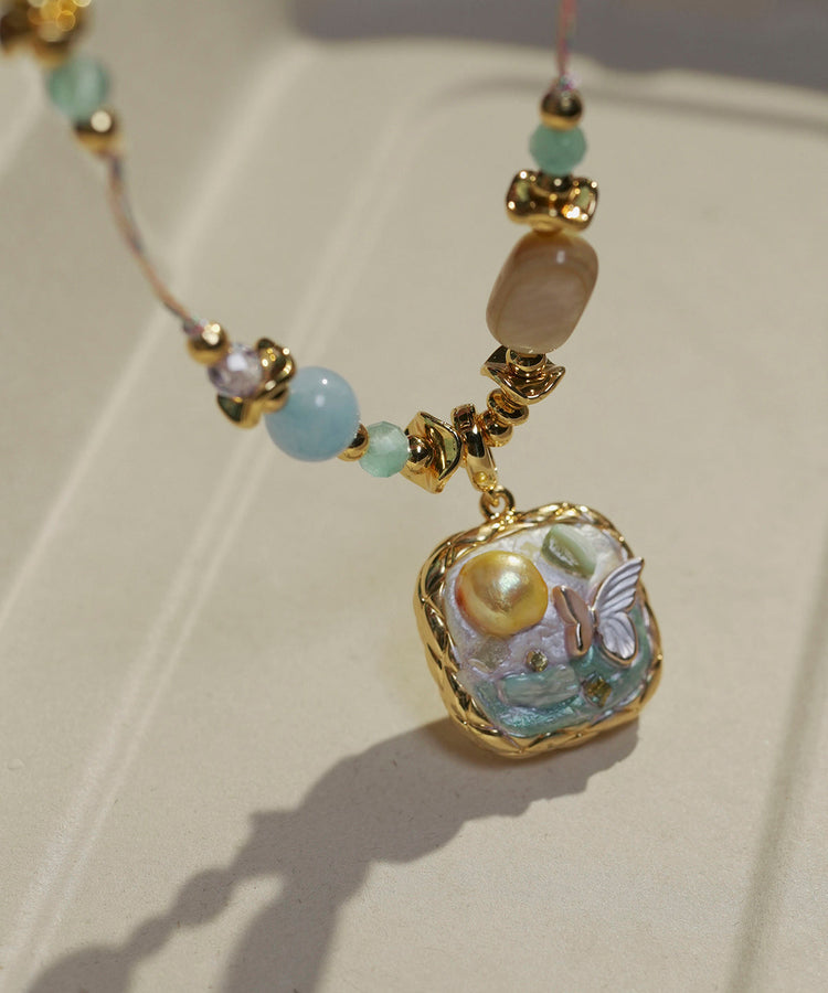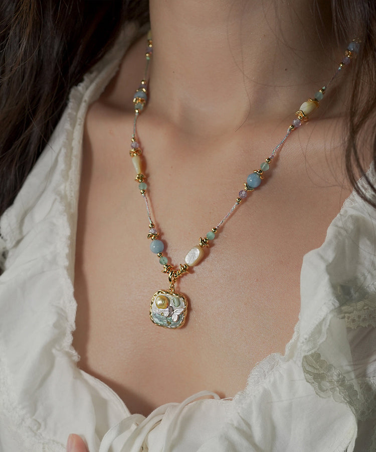 Retro Rainbow Alloy Pearl Asymmetrical Pendant Necklace