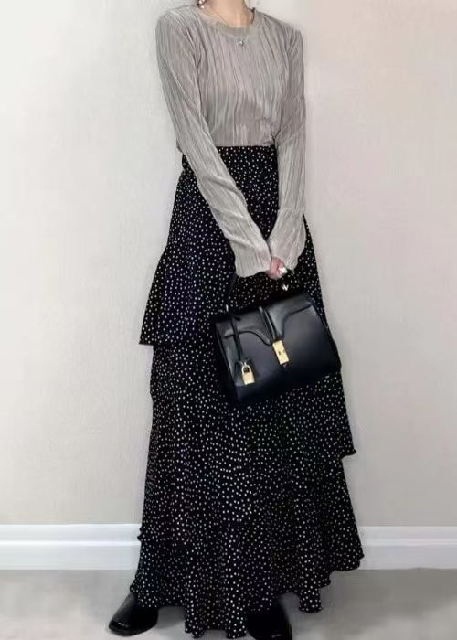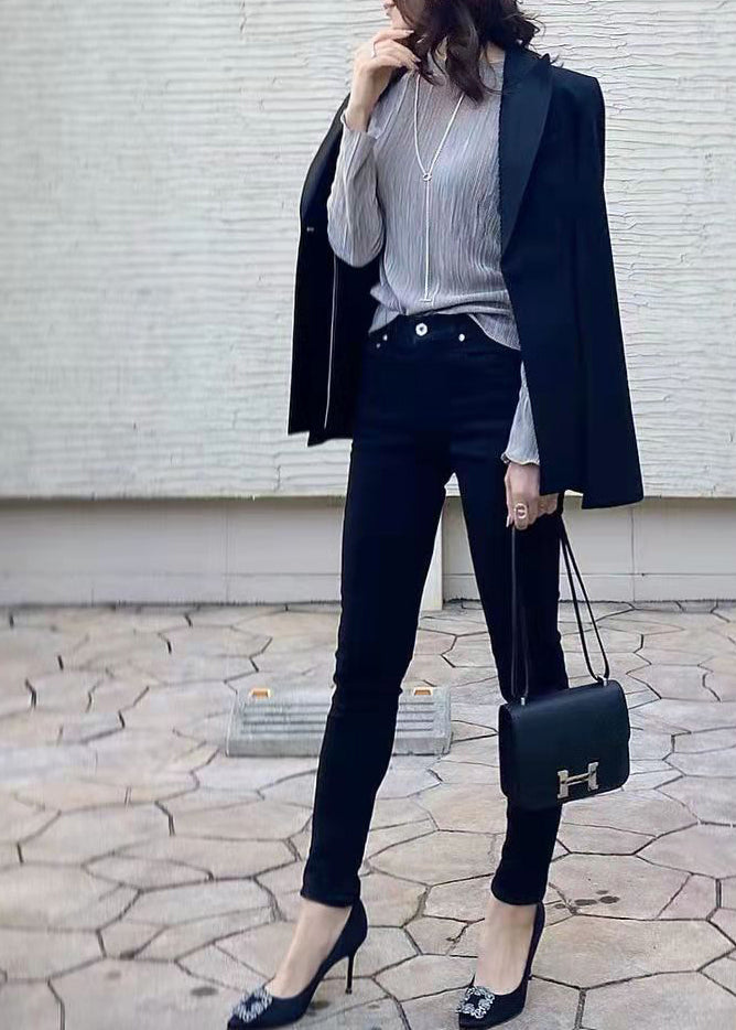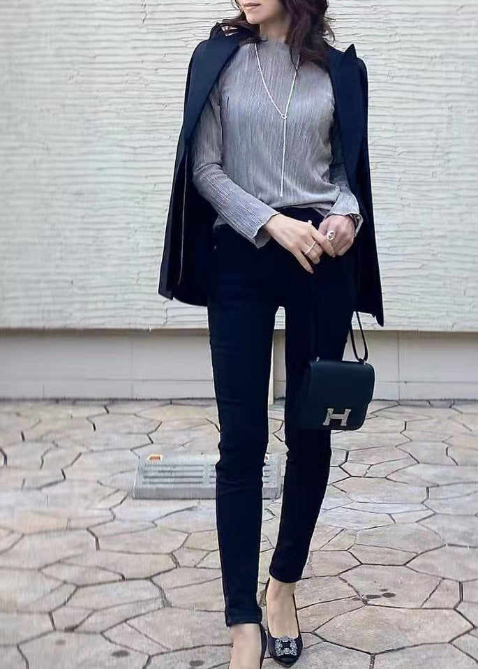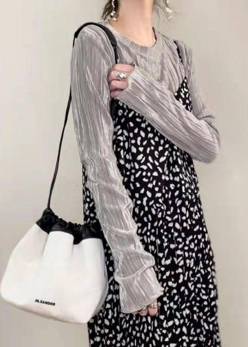 Silm Fit Grey O-Neck Wrinkled Womens Shirt Fall