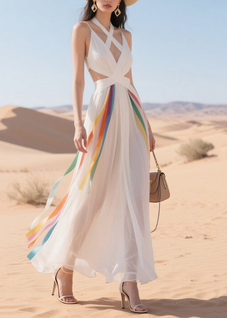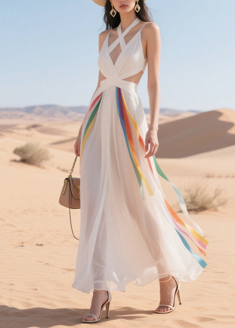Simple White Bandage Multicolour Ribbon Chiffon Mini Dress Summer