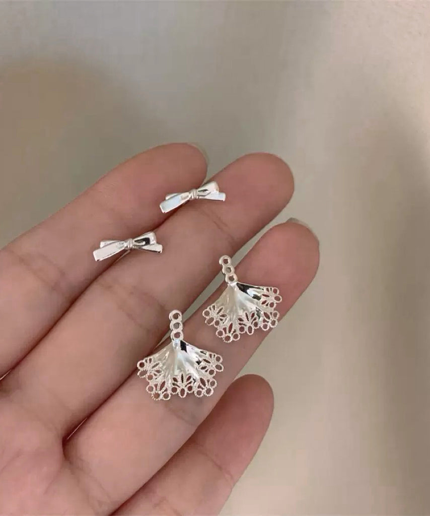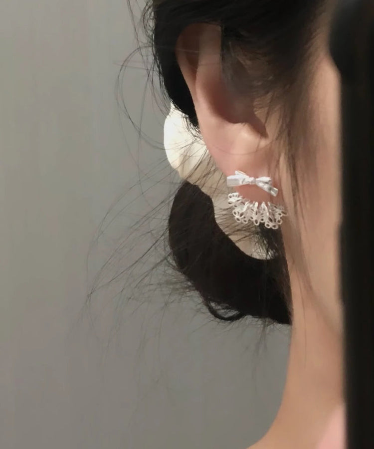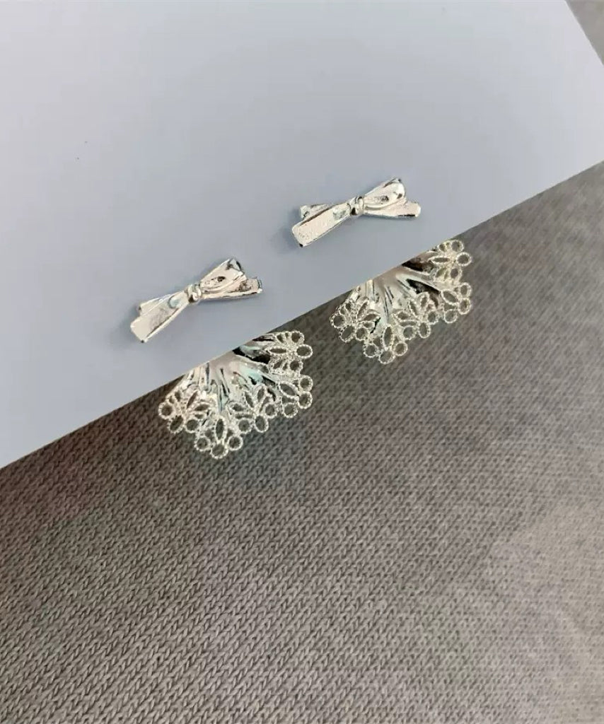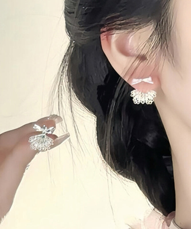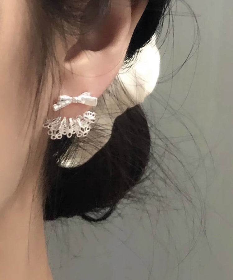 Style Silk Sterling Silver Lace Bow Stud Earrings