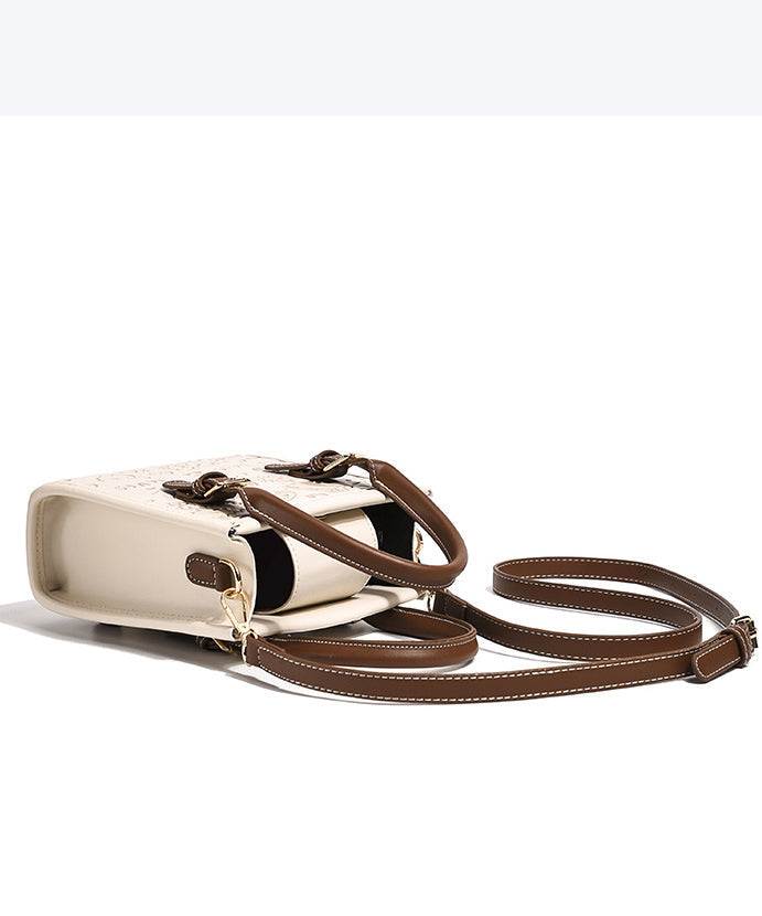 Stylish Beige Emboss Large Capacity Faux Leather Tote Handbag