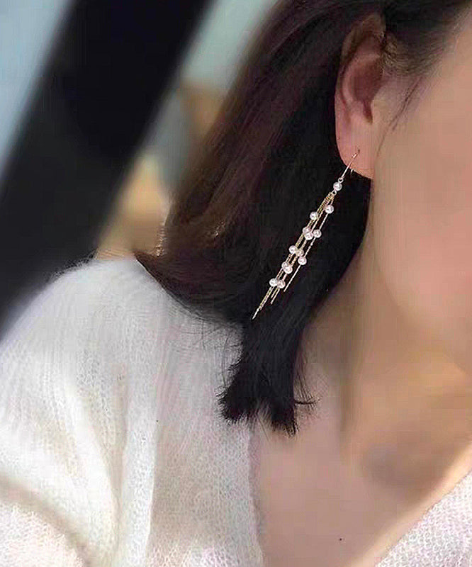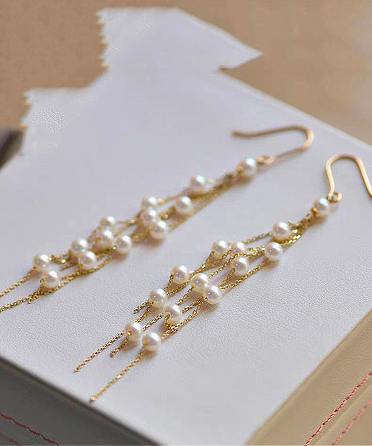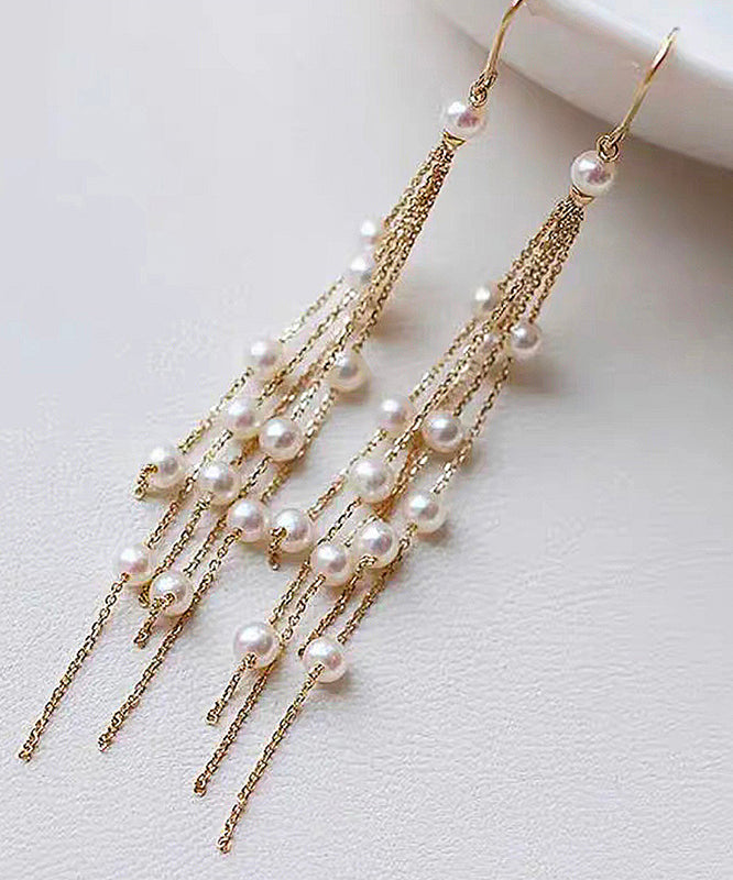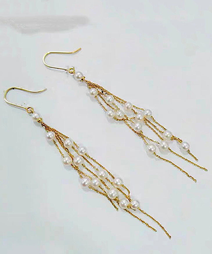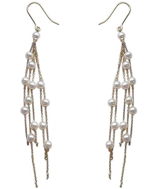 Stylish Gold Copper Alloy Pearl Tassel Drop Earrings