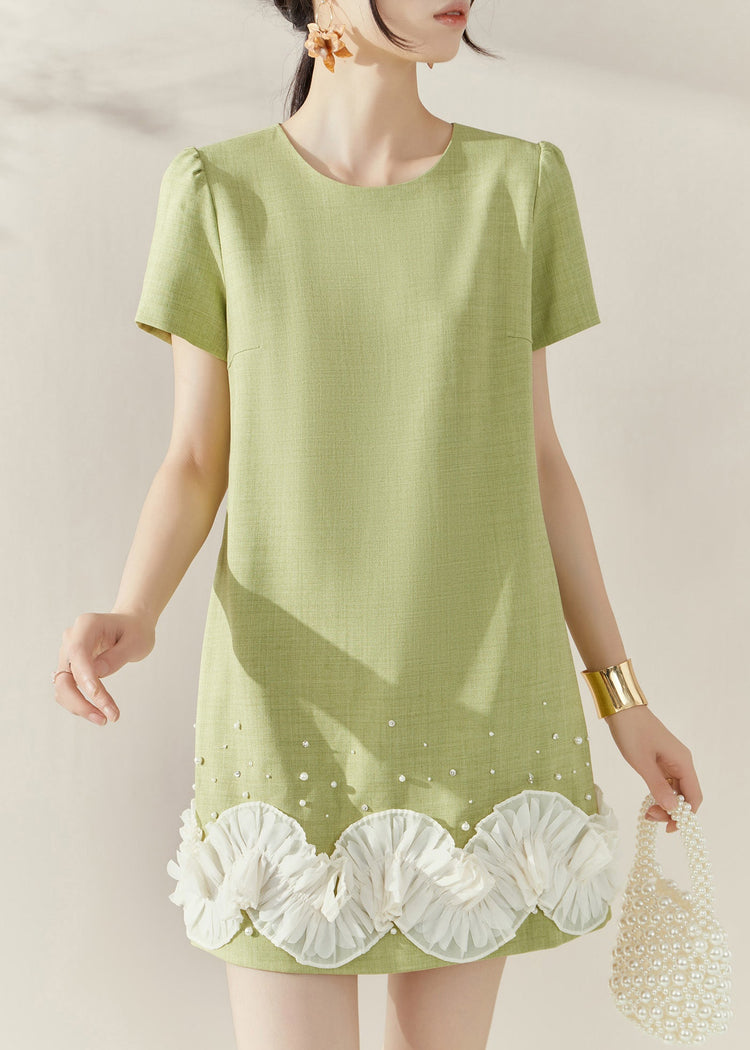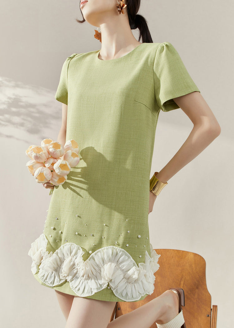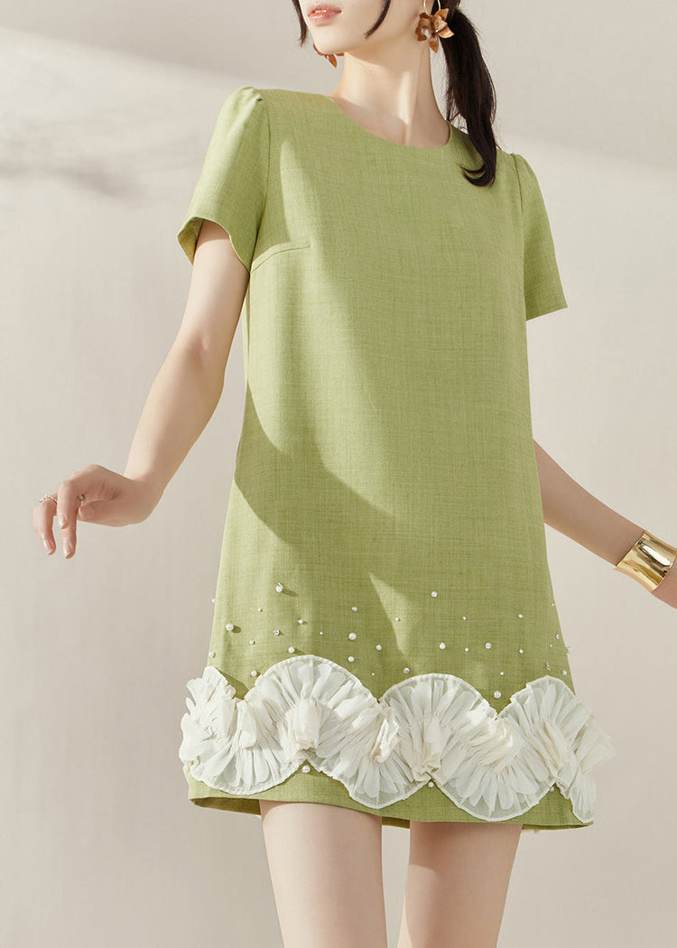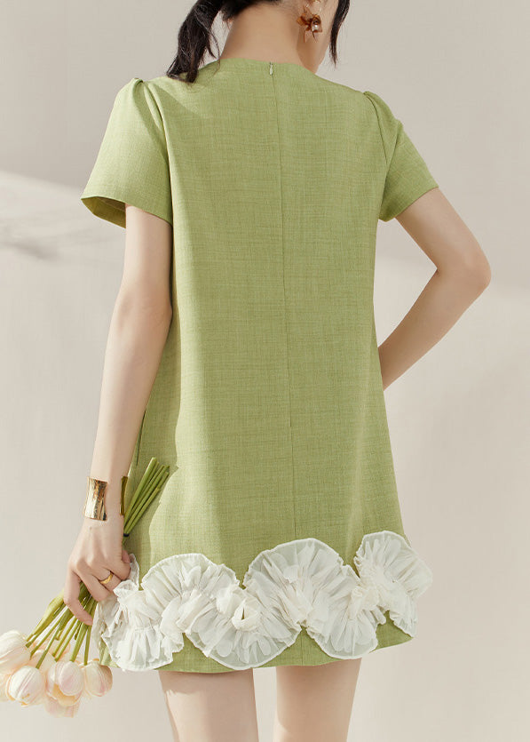 Stylish Green O-Neck Floral Mid Dresses Short Sleeve