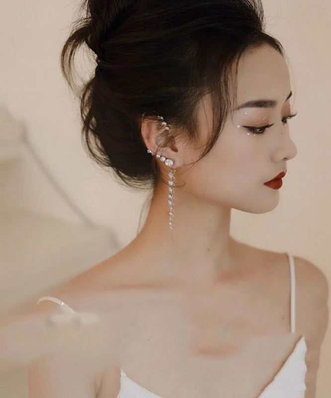 Unique Silk Sterling Silver Zircon Single Drop Earrings