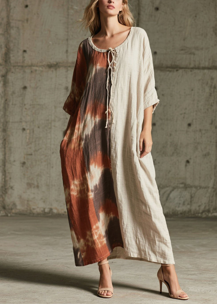 Unique Tie Dye Patchwork Cotton Maxi Dress Bracelet Sleeve