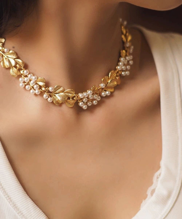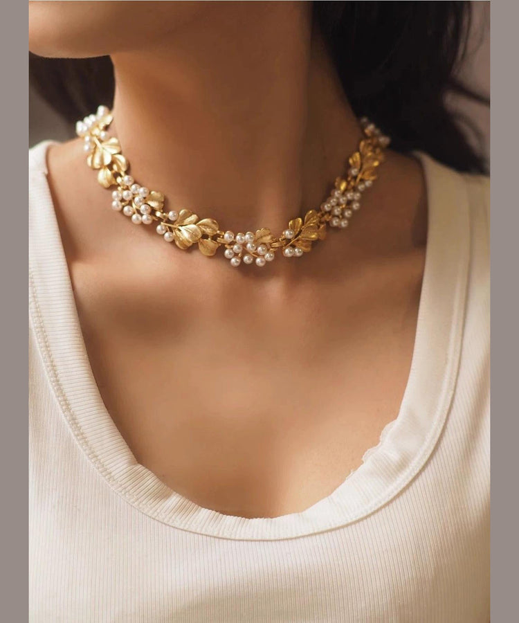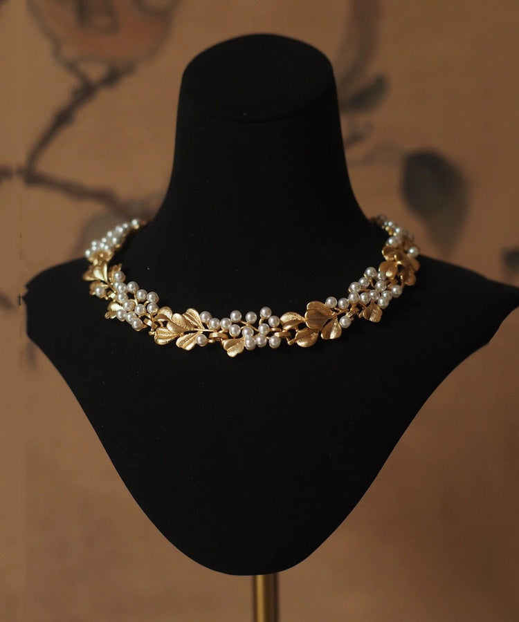 Vogue Gold Copper Alloy Pearl Ginkgo Leaf Gratuated Bead Necklace