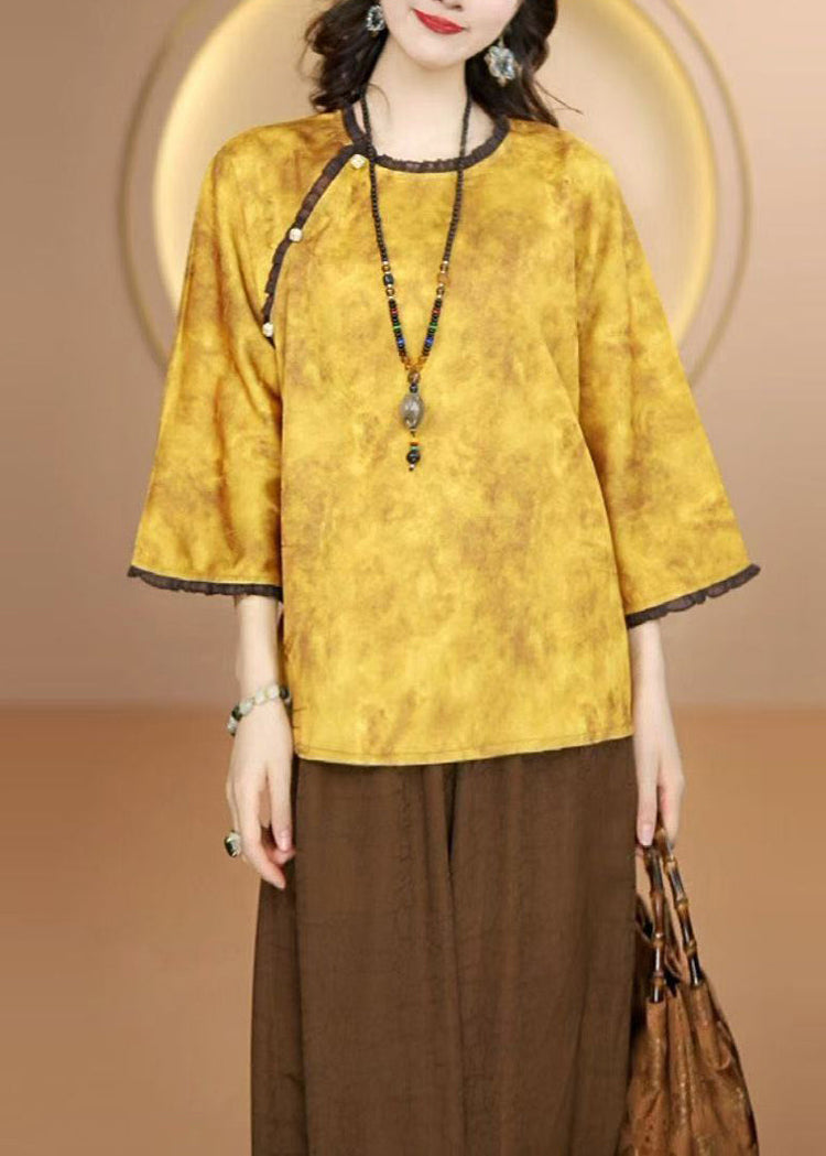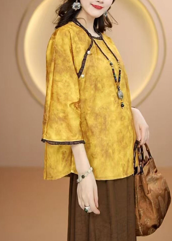 Women Green O Neck Ruffled Patchwork Silk Shirt Bracelet Sleeve