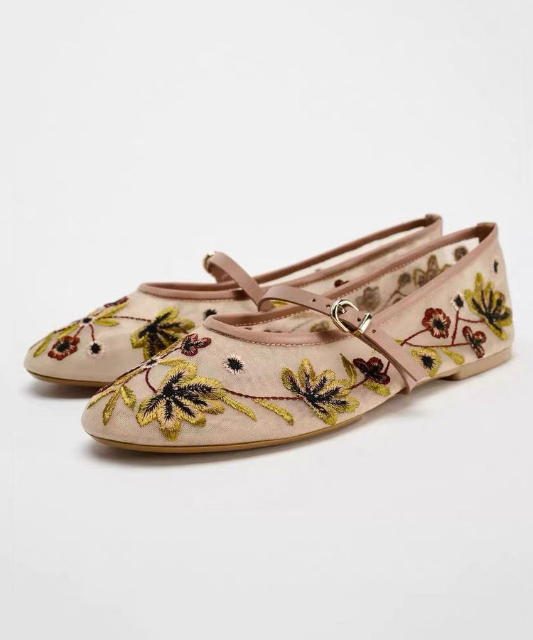 Women Splicing Flat Shoes Green Breathable Mesh Embroidered