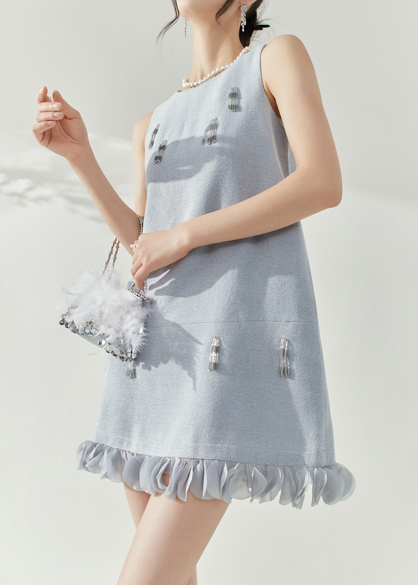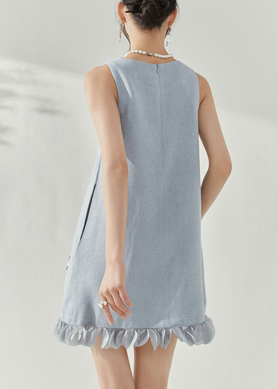 Elegant Blue O-Neck Patchwork Nail Bead Mid Dresses Sleeveless