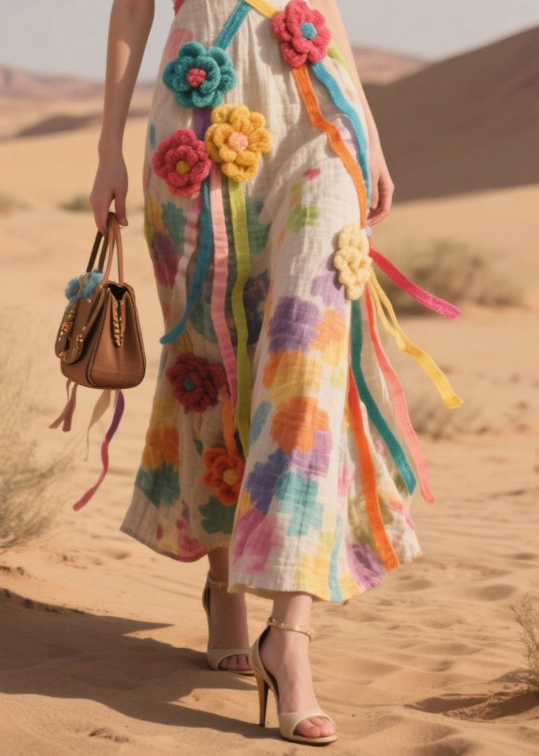 DIY Beige Print Cotton Cami Dresses Multicolor Flower Summer