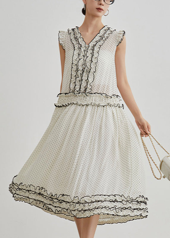Brief Beige Dot Ruffled Patchwork Maxi Dresses Summer
