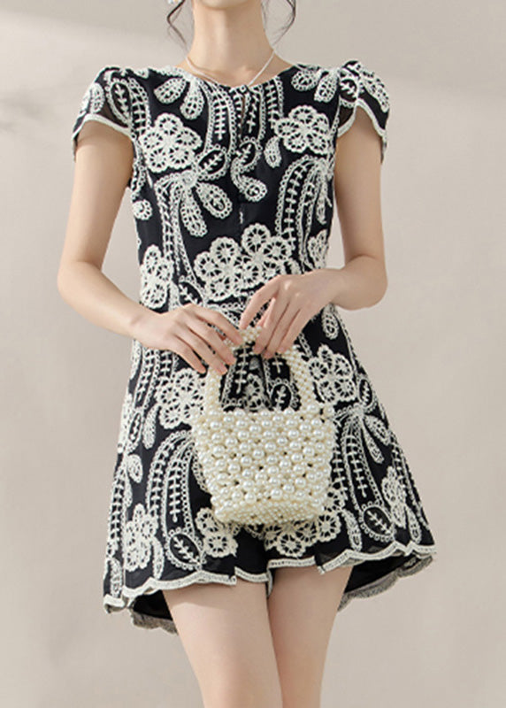 Chic Black Embroidered Side Open Top And Shorts Two Piece Set Summer