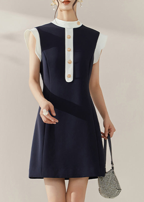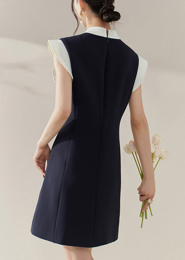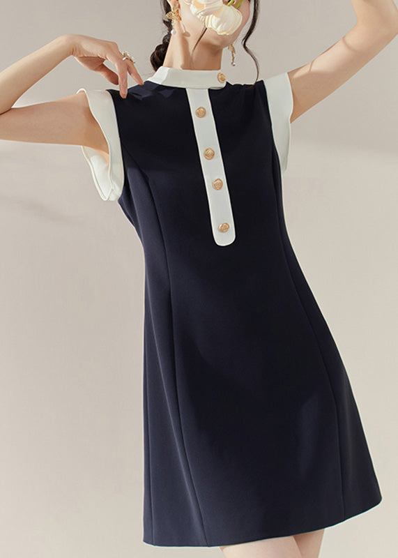 Chic Blue Turtleneck Patchwork Vacation Mid Dresses Summer