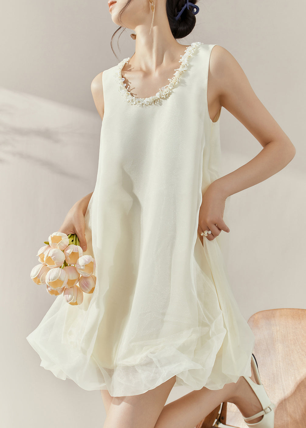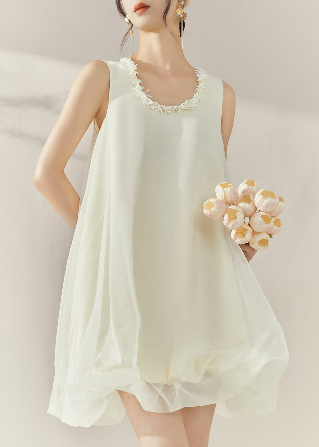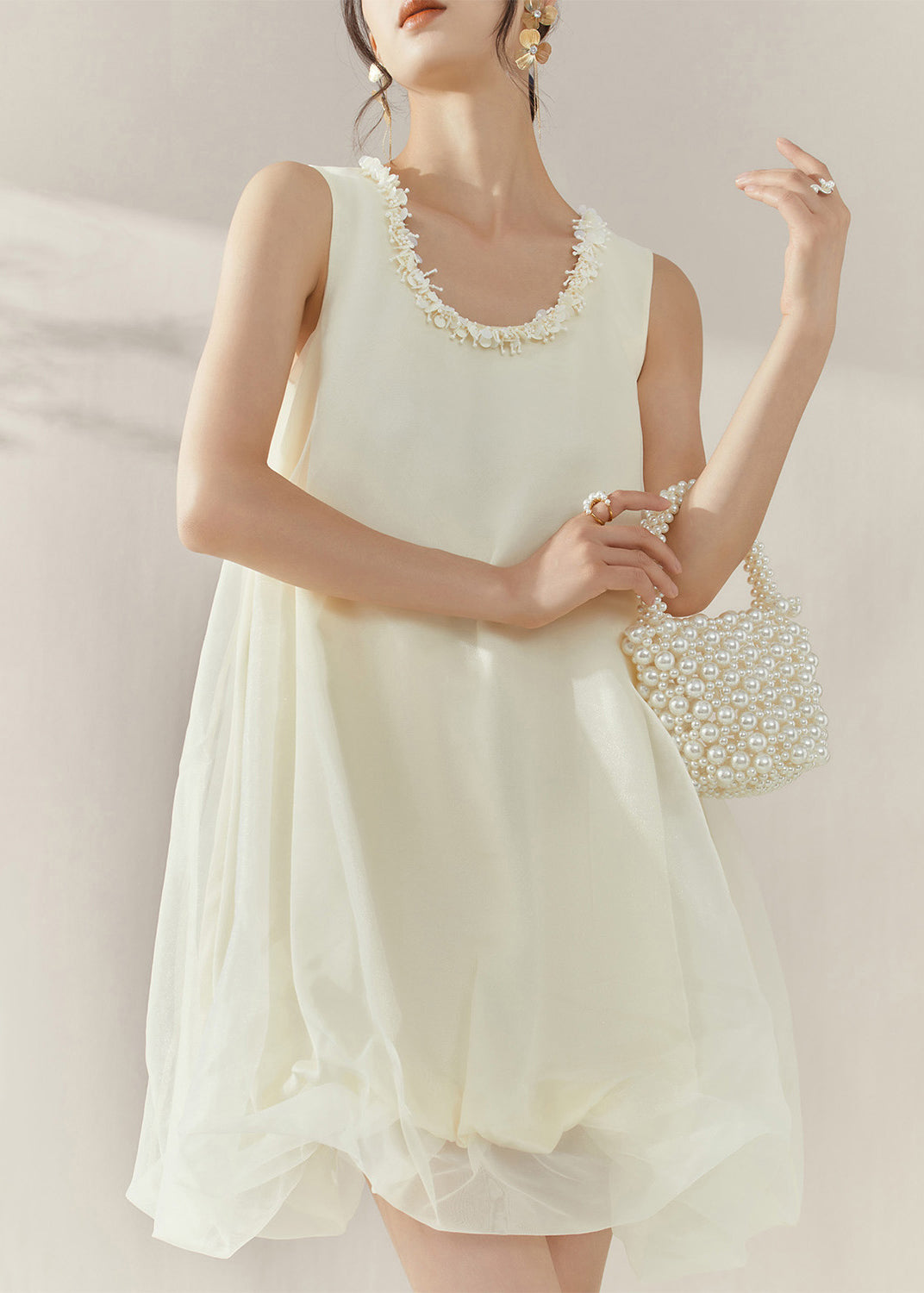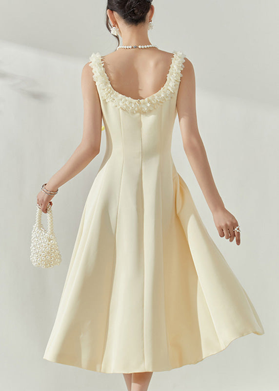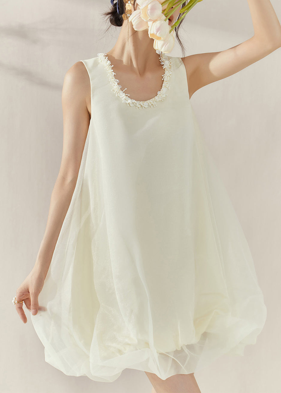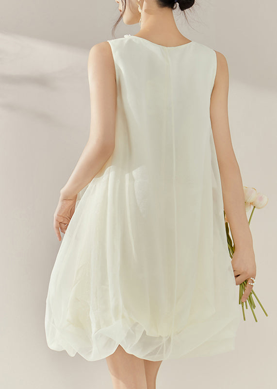Classy Beige O-Neck Patchwork Tulle Mid Dresses Sleeveless