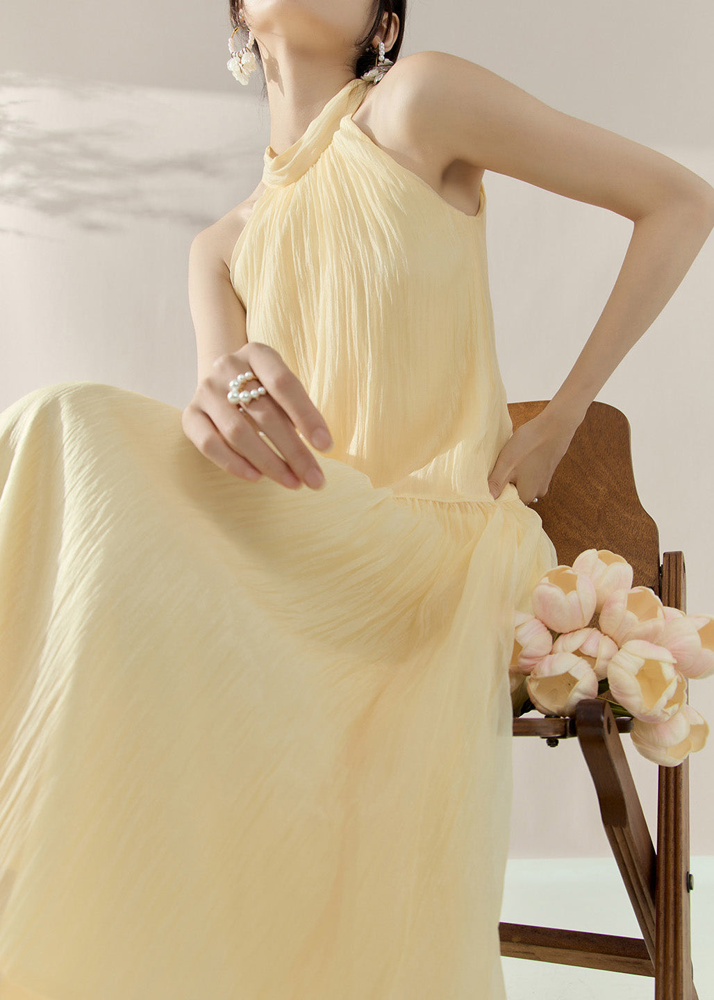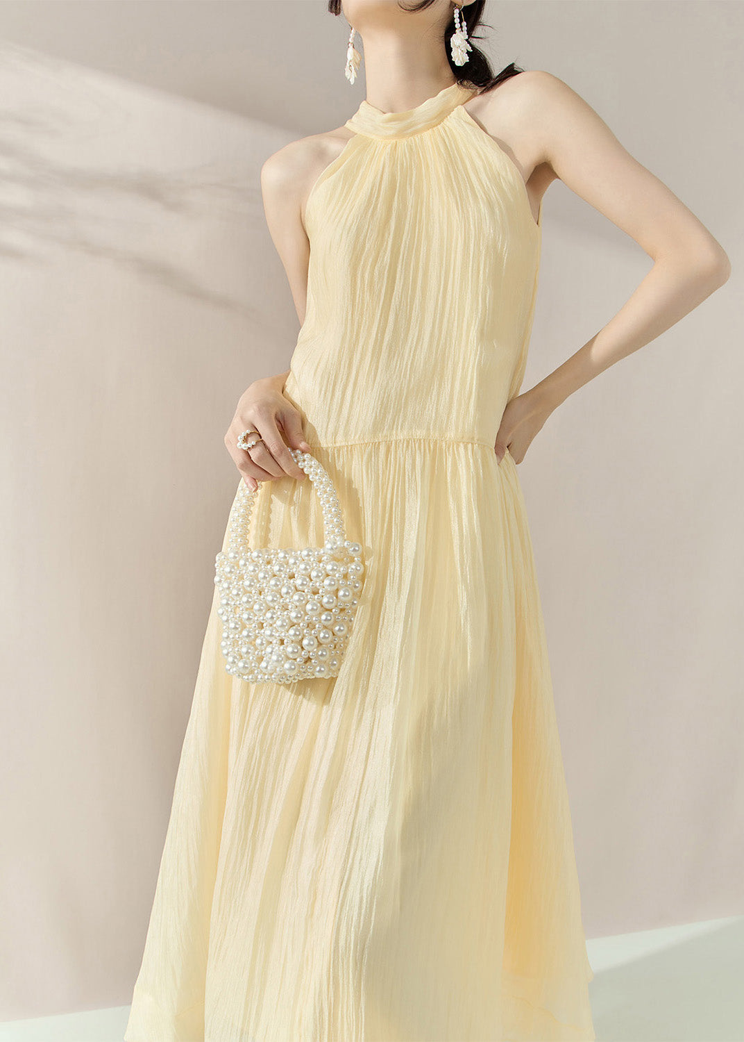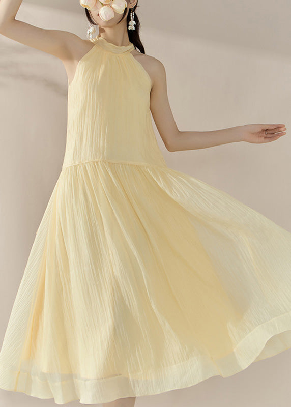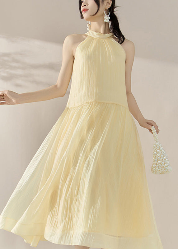 Elegant Yellow Halter Cold Shoulder Patchwork Holiday Maxi Dresses Summer